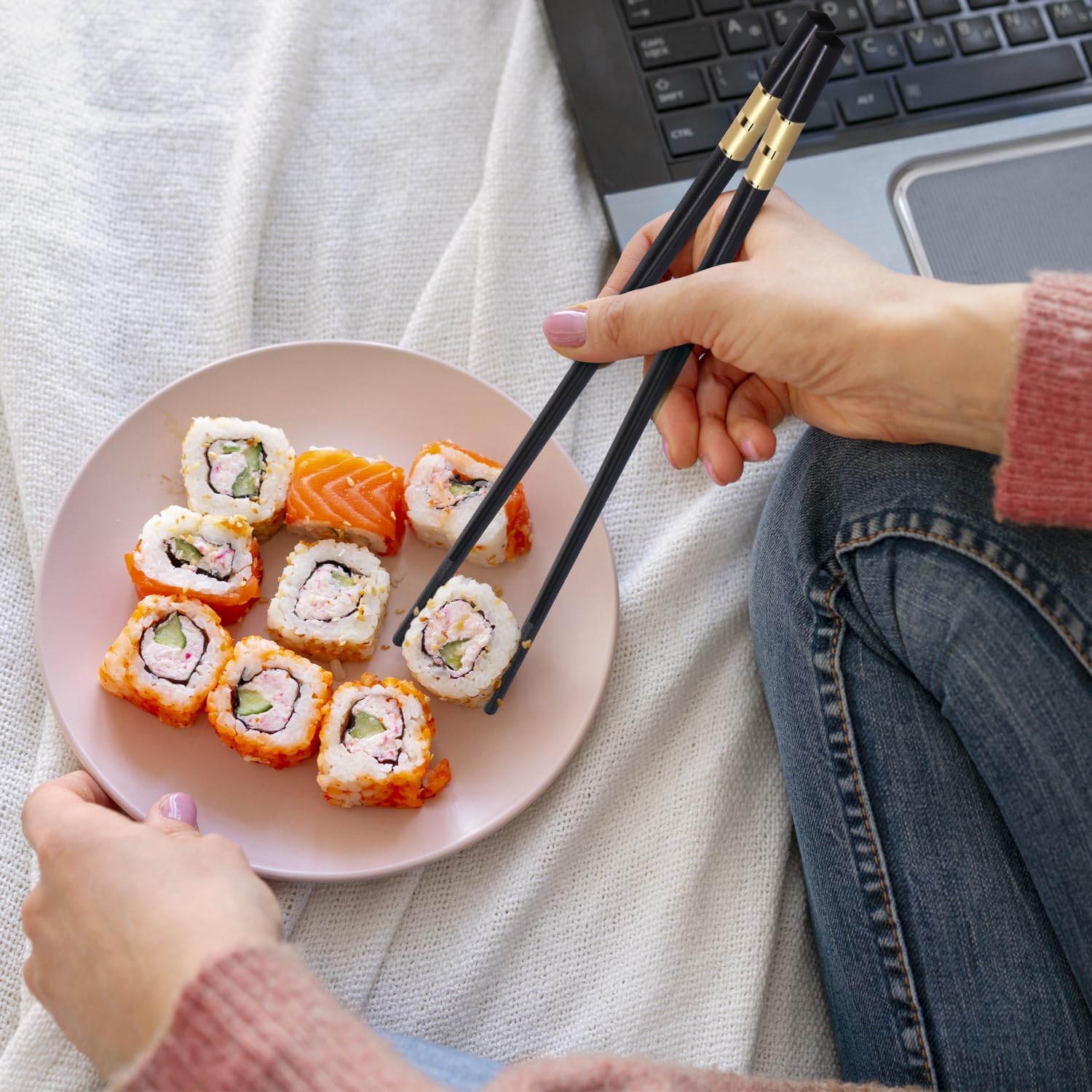- Typical Style: Adorned with golden bar on the tops, these reusable chopsticks add an elegant touch to any table setting. It creats a visually appealing dining experience when you enjoy food such as sushi, ramen, or even General Tso's Chicken.