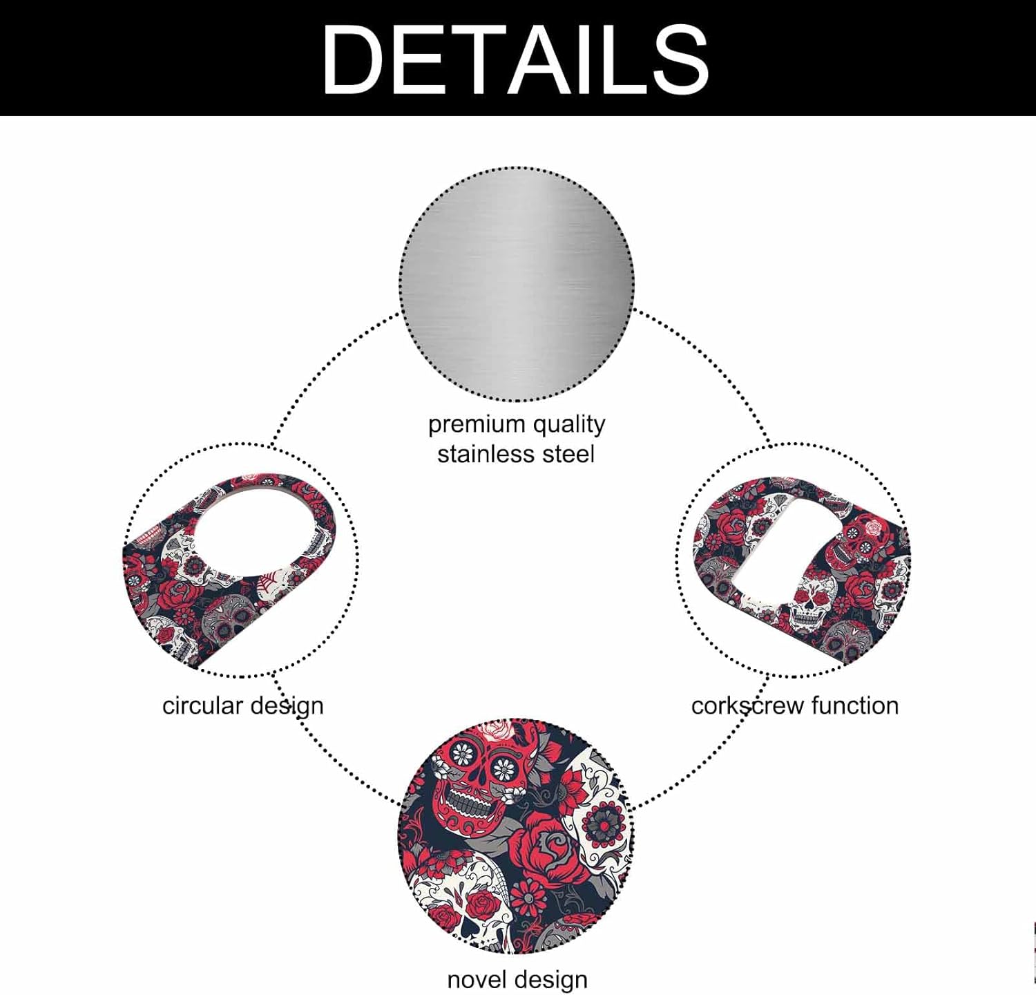 - Premium Material: Our skull and flowers bottle opener is made of stainless steel, sturdy for long-term use.