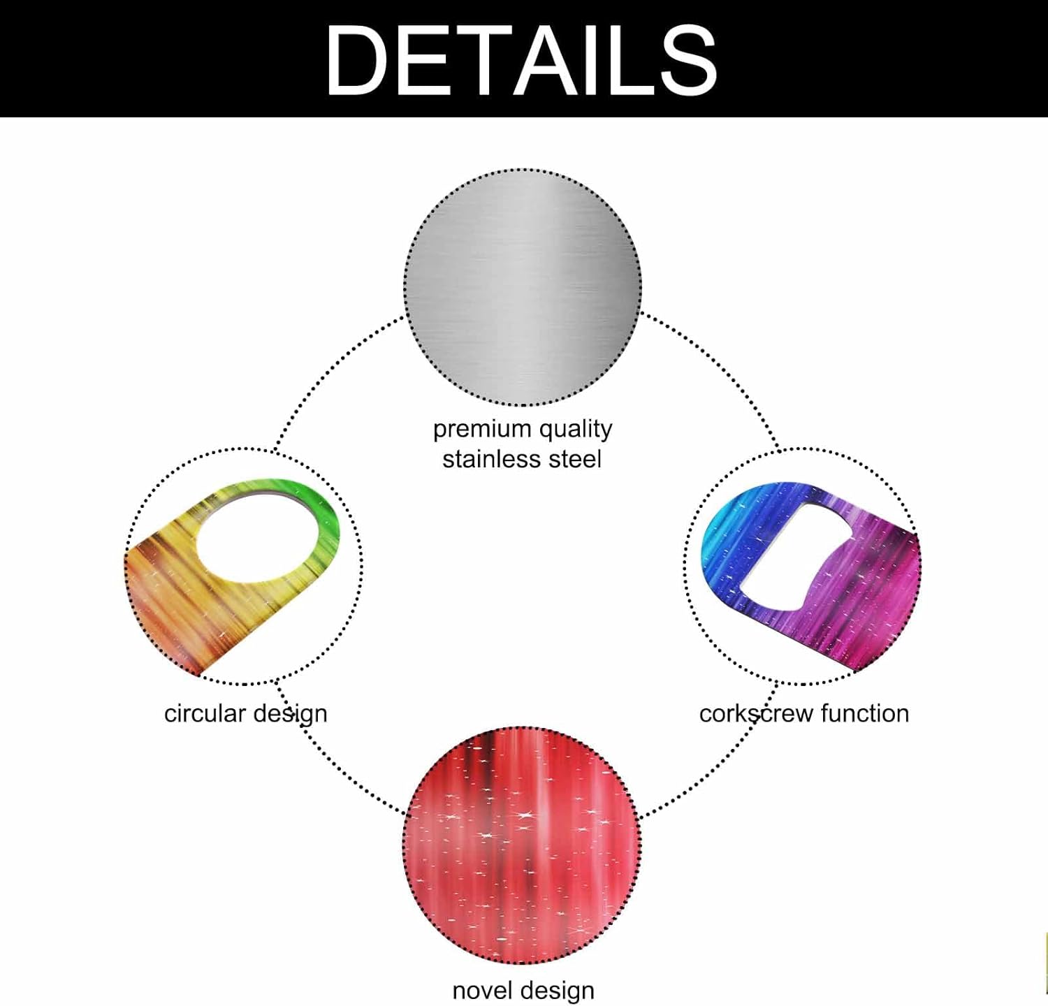 - Premium Material: Our colorful stripes bottle opener is made of stainless steel, sturdy for long-term use.
