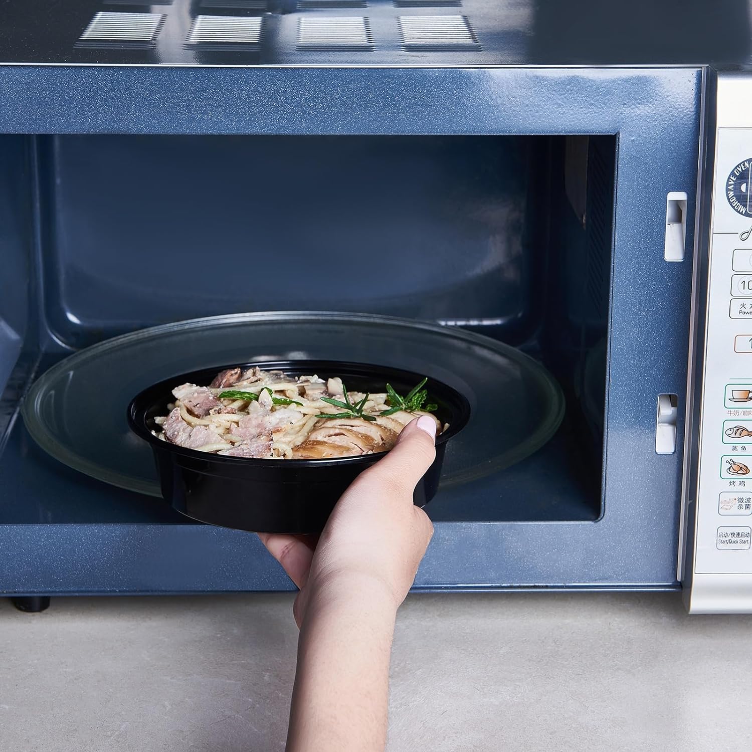 FULING 24 oz 150 ct Round Meal Prep Food Storage Containers with Lids To Go Plastic Lunch Plan Box Disposable Take Out Bowls Black BPA Free Reusable Durable Stackable Microwave Freezer Dishwasher Safe