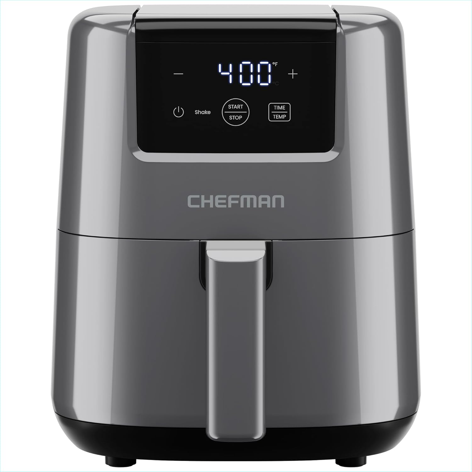 CHEFMAN 2 Qt Mini Air Fryer – Digital Space-Saving Compact Air Fryer with Nonstick and Dishwasher Safe Basket, Quick & Easy Meals in Minutes, Features Digital Timer and Shake Reminder – Grey