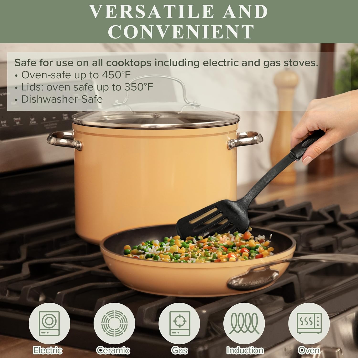 Nuwave Healthy Duralon Blue Ceramic Nonstick Cookware Set, Diamond Infused Scratch-Resistant, PFAS Free, Dishwasher & Oven Safe, Induction Ready & Evenly Heats, Tempered Glass Lids & Stay-Cool Handles