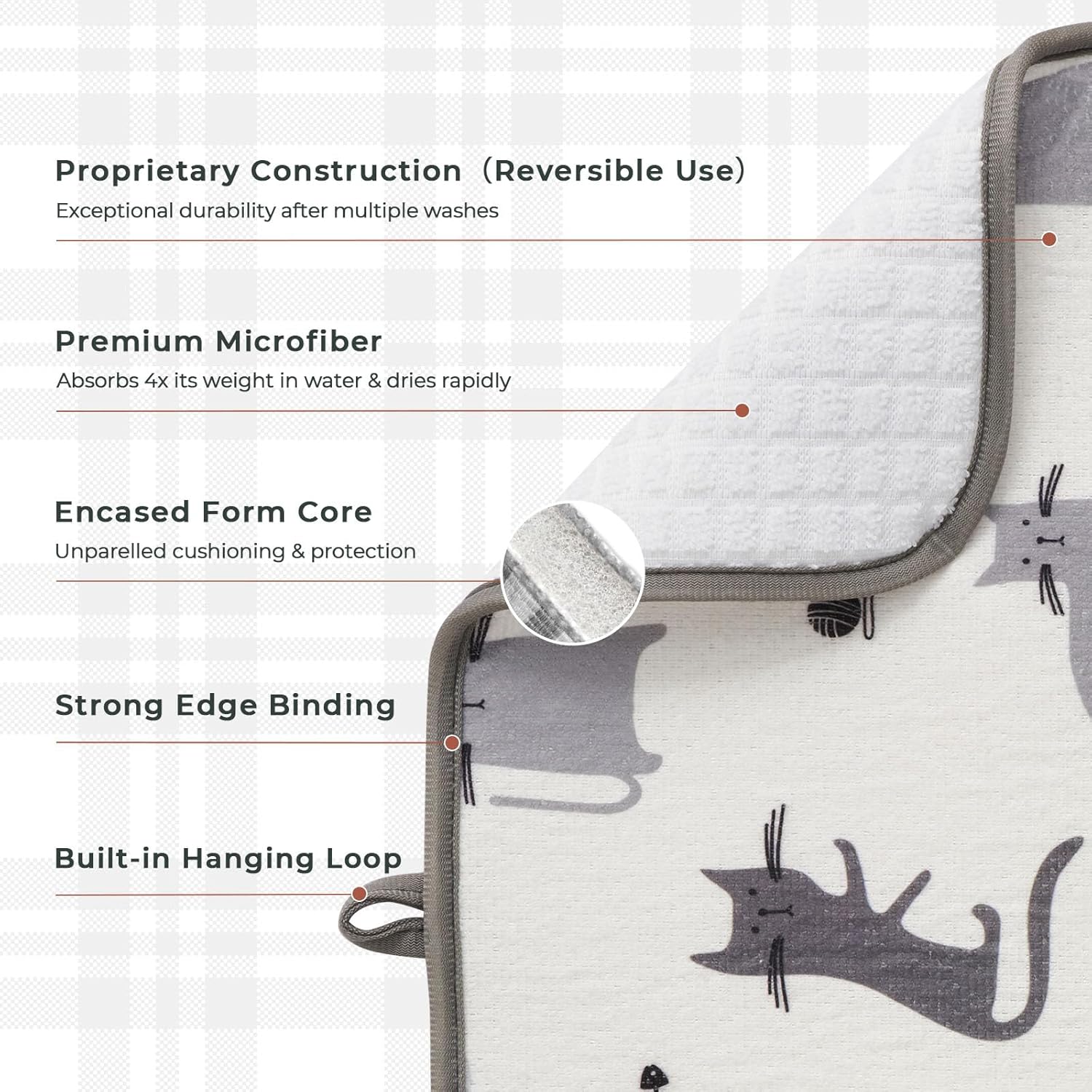 - 【Easy Maintenance & Great Home Gift】Machine washable for easy cleaning, this kitchen tableware drying pad features absorbent microfiber construction with excellent color-locking effects. It won't fade after repeated cleaning and can be reused multiple times.Great hostess gifts, housewarming gifts, and camping accessories. Decorated with personalized printed patterns, our microfiber dish drying mat will surprise your family and friends.