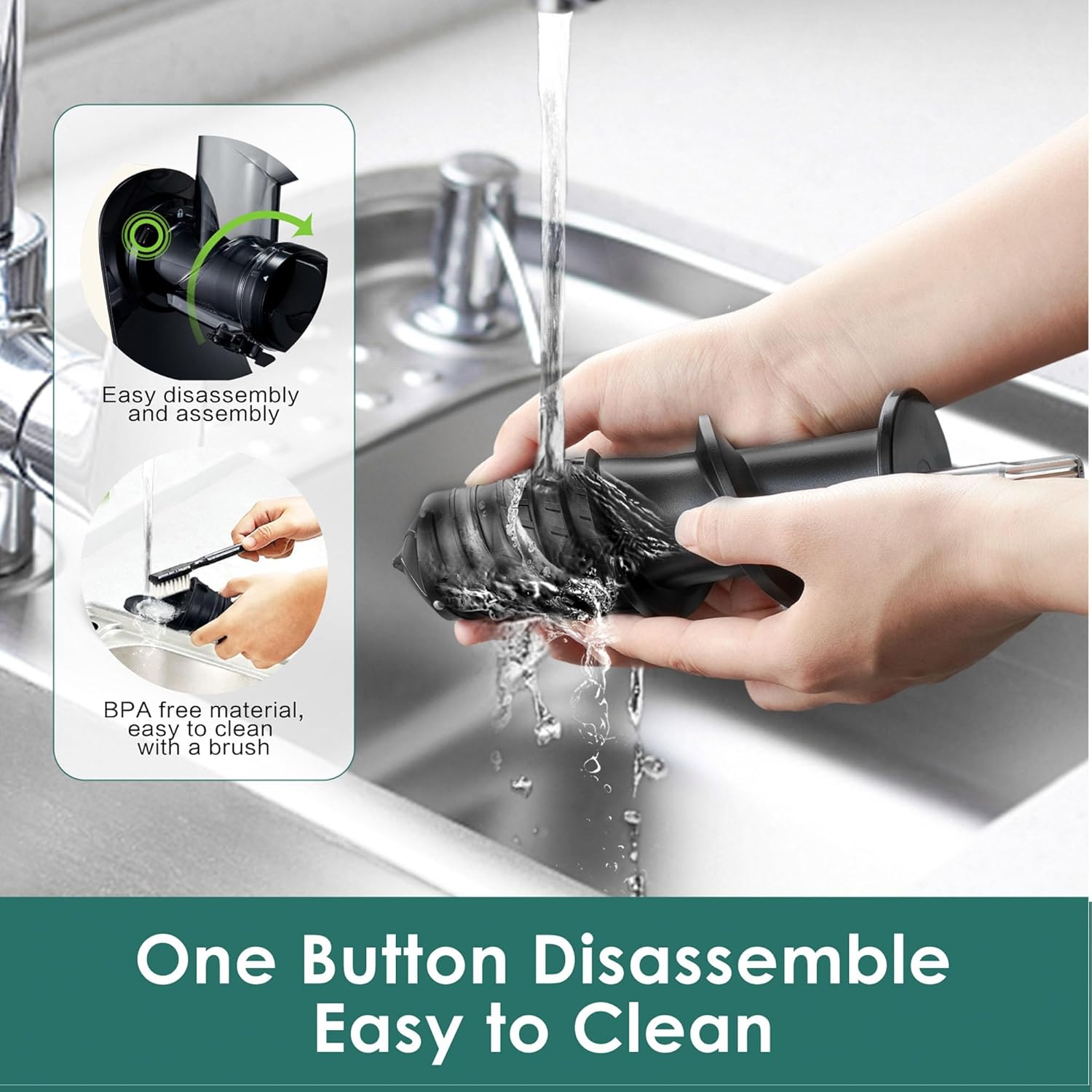 - 【Simple Assembly & Cleaning】Fretta Masticating juicer is designed for effortless use. With just a single touch of a button, the juicing body easily detaches, enabling convenient cleaning under running water. For your convenience, we have also included a specialized brush to effortlessly remove any small pulp from the juicing screen. Enjoy the convenience of quick assembly and hassle-free cleaning with our user-friendly juicer.