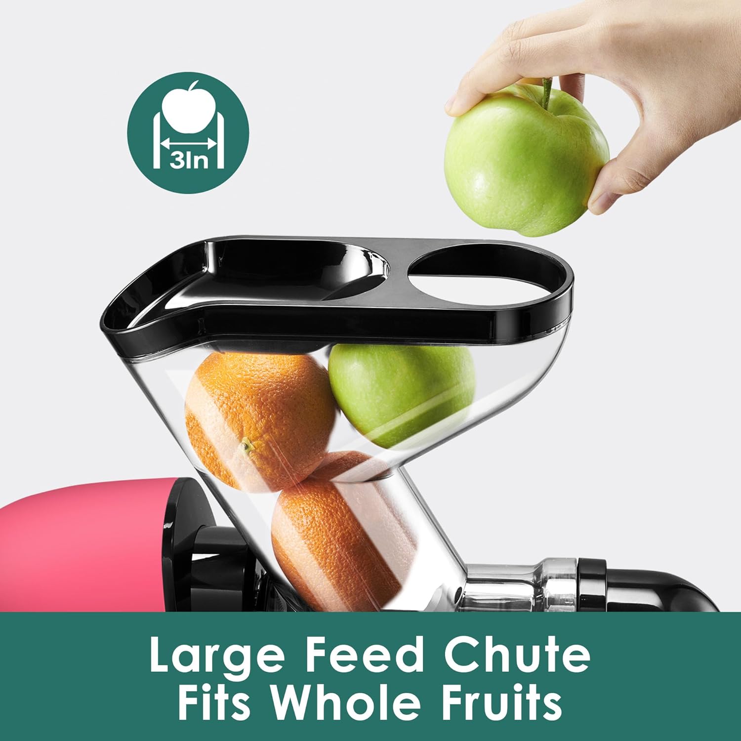 Slow Juicers, Cold Pressed Juicer Machine with 3-inch Large Feeding Chute,Masticating Juicer Machines Vegetable and Fruit,BPA Free, Powerfull 200w Motor(Pink)