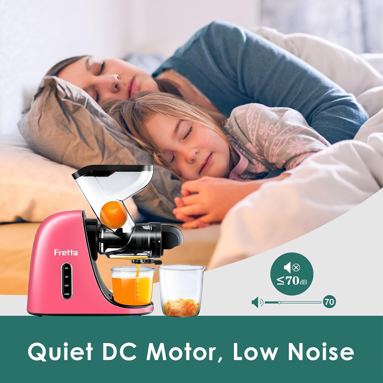 - 【Efficient and Quiet 200W Motor】The Fretta juicer is equipped with a powerful 200-watt DC noise-reduced motor, providing strong and efficient performance for faster juicing while keeping noise levels to a minimum.