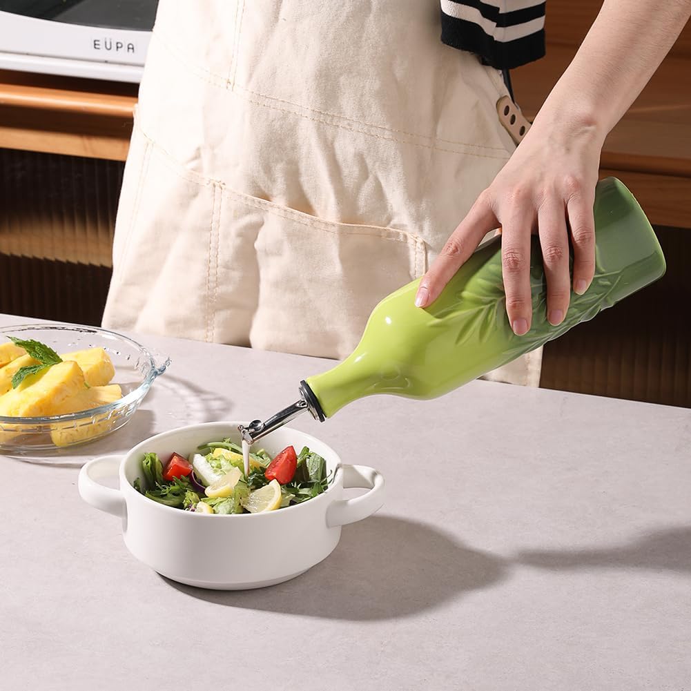 Sweejar Large Ceramic Olive Oil Dispenser Bottle, 24 Oz Relief Opaque Oil Cruet Protects Oil To Reduce Oxidation, Storage Vinegar, Soy Sauce, Coffee Syrup, Liquids, Set of 1 (Gradient Green)