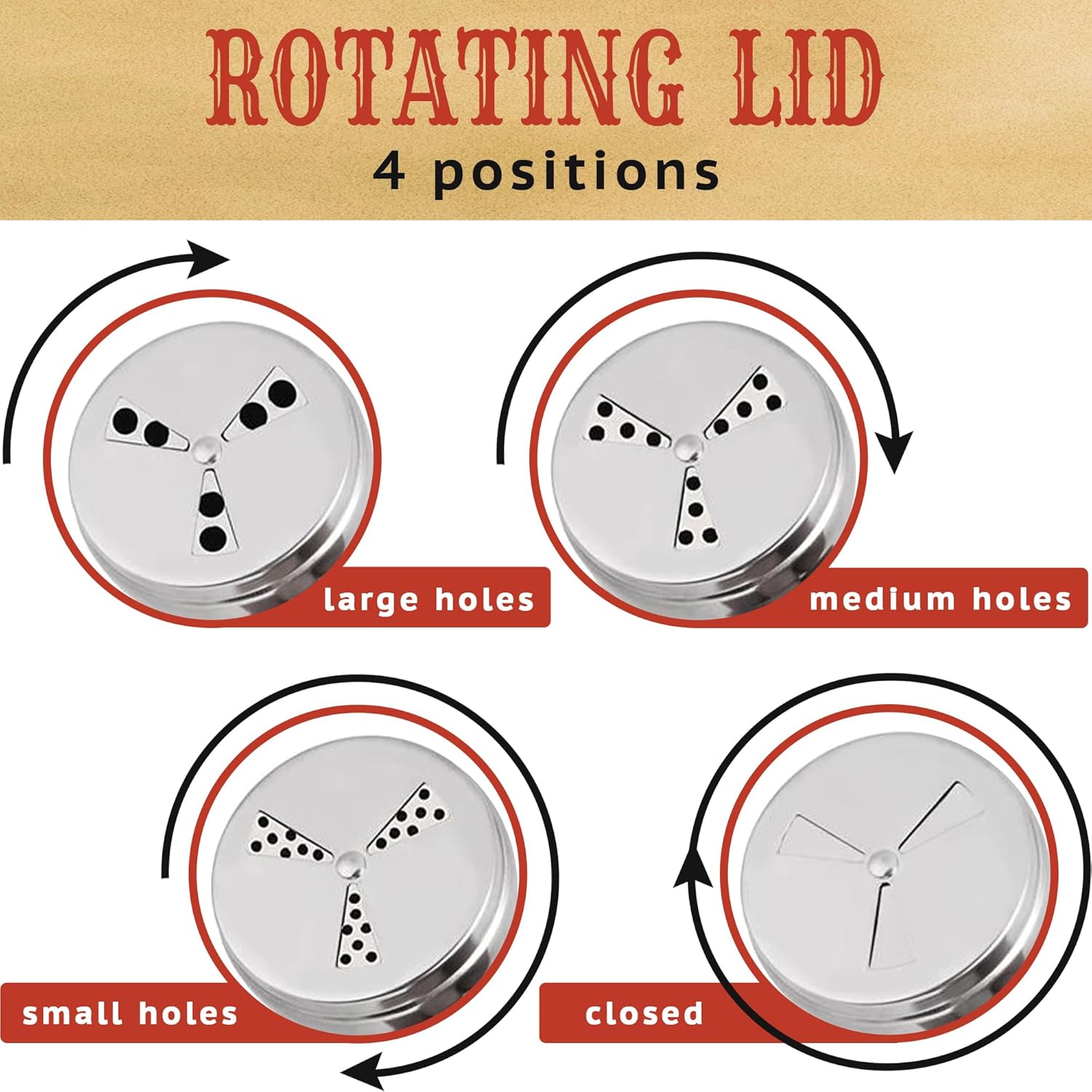 CUSINIUM [Pack of 4] 10 oz Seasonings Spice Shakers - BBQ Dry Rub Shakers - Cooking Dredge with Adjustable Fan-Style Lid and Handles