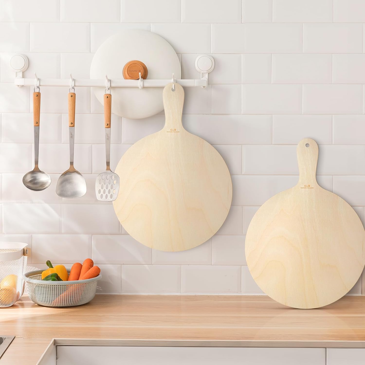 - Superior Food-Grade Material: Crafted from natural birch plywood, each piece boasts a unique texture and color. The pizza spatula is durable, rust-resistant, and crack-resistant, providing a premium kitchen experience