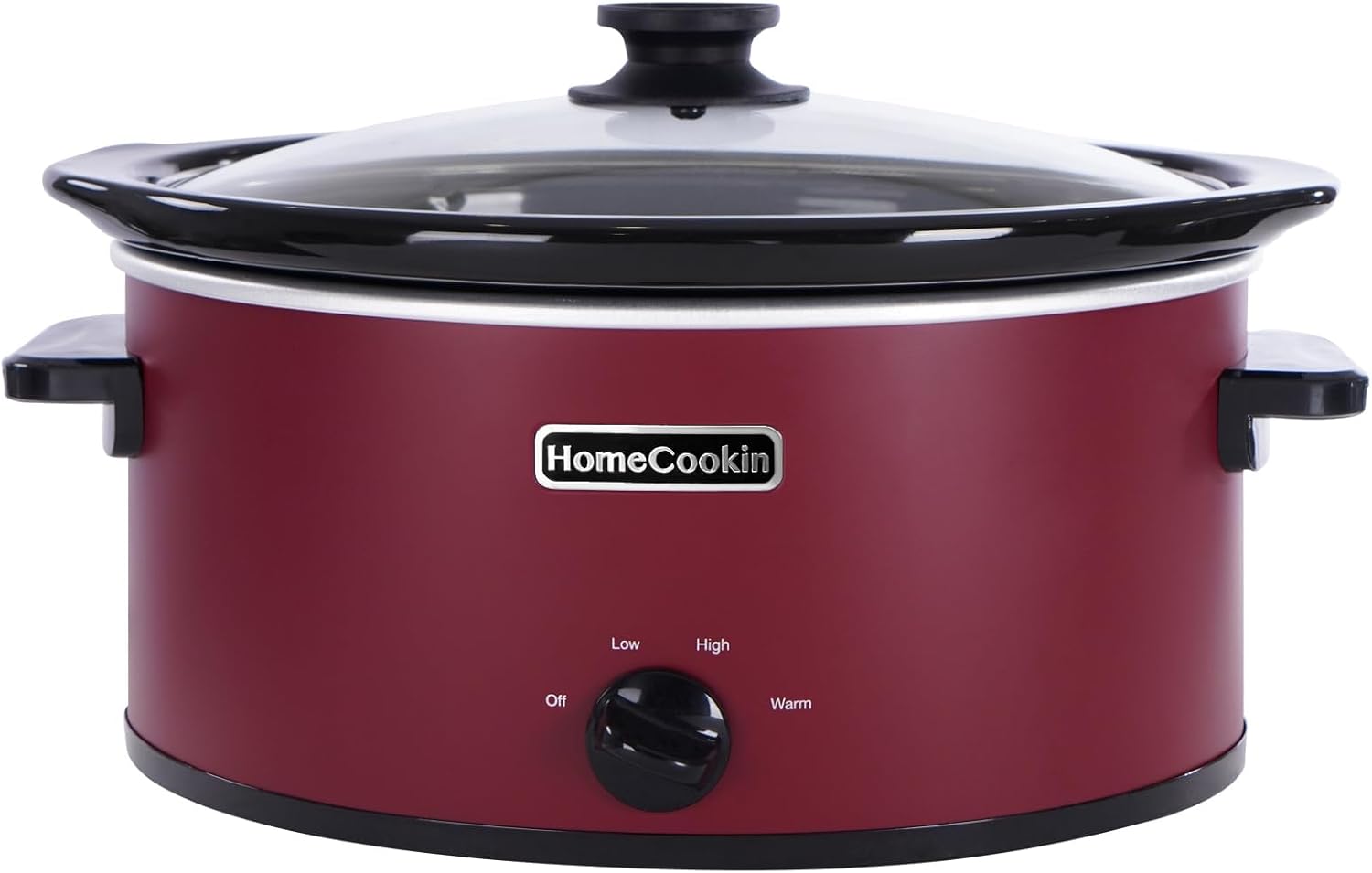HOMECOOKIN 7 Quart Slow Cooker Oval Manual Pot Food Warmer with 3 Cooking Settings, Red Stainless Steel