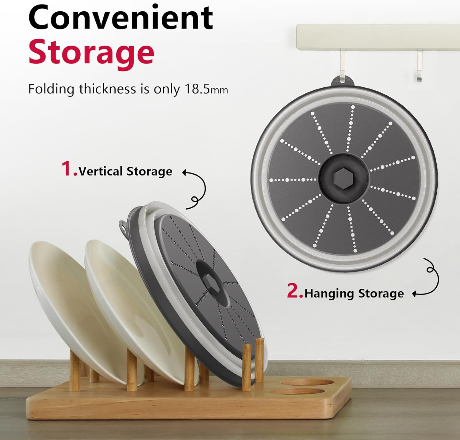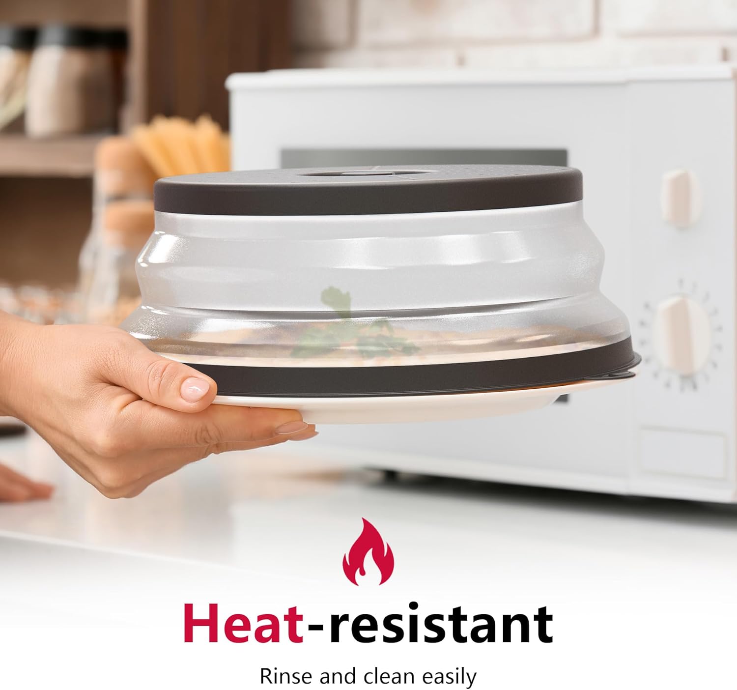 - Easy to Store: The foldable microwave splatter cover pops up to 3.2 inches to cover tall plates, food stacks, and shallow bowls. It also folds down to 0.72 inches when not in use. And features a hook hole for easy storage, saving you more space.