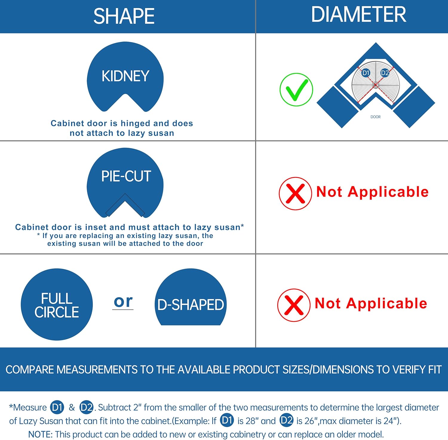 - Maximized Corner Storage: Optimize your kitchen corner cabinet space with JOWBOOW 24 inch Lazy Susan. Designed for corner cabinets over 24 inches, our lazy susan turntable for cabinet efficiently utilizes hard-to-reach areas, making it perfect for storing bowls, baking supplies, and kitchen gadgets. Note: Lazy Susan unable to install on the cabinet door.