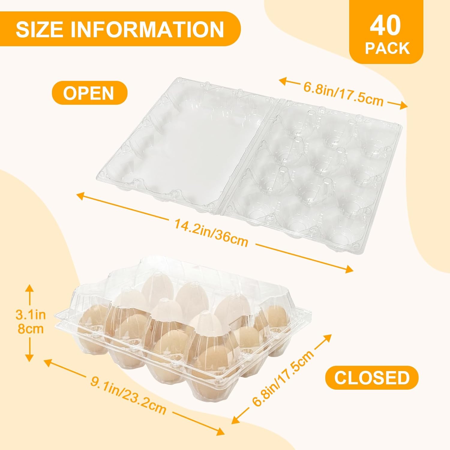 - 40 Value Pack: Package included 40 pack of 3×4 grids plactic egg cartons Large . Each clear egg carton measures 14.2 x 6.8 x 3.1 inch (Large Size), 1 dozen egg cartons are available in cheap bulk package that ensure a steady supply of eggs for egg storage.