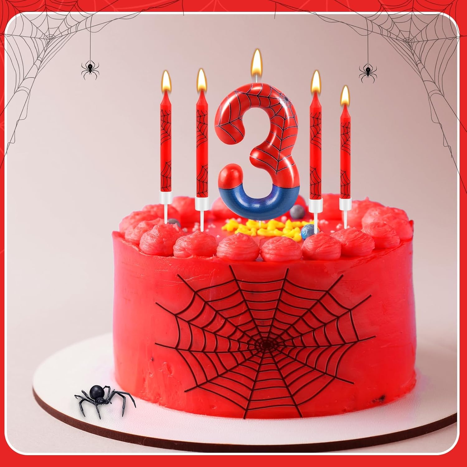 - The Package Includes: You will receive 12 red spider themed birthday candles and 1 number 3 candle, enough for all kinds of party celebrations and everyday use to create a fantastic birthday cake, note: the product may have a color difference, but it does not affect use, the candle will slowly melt as it burns, and it is recommended not to leave it on the cake for more than two minutes