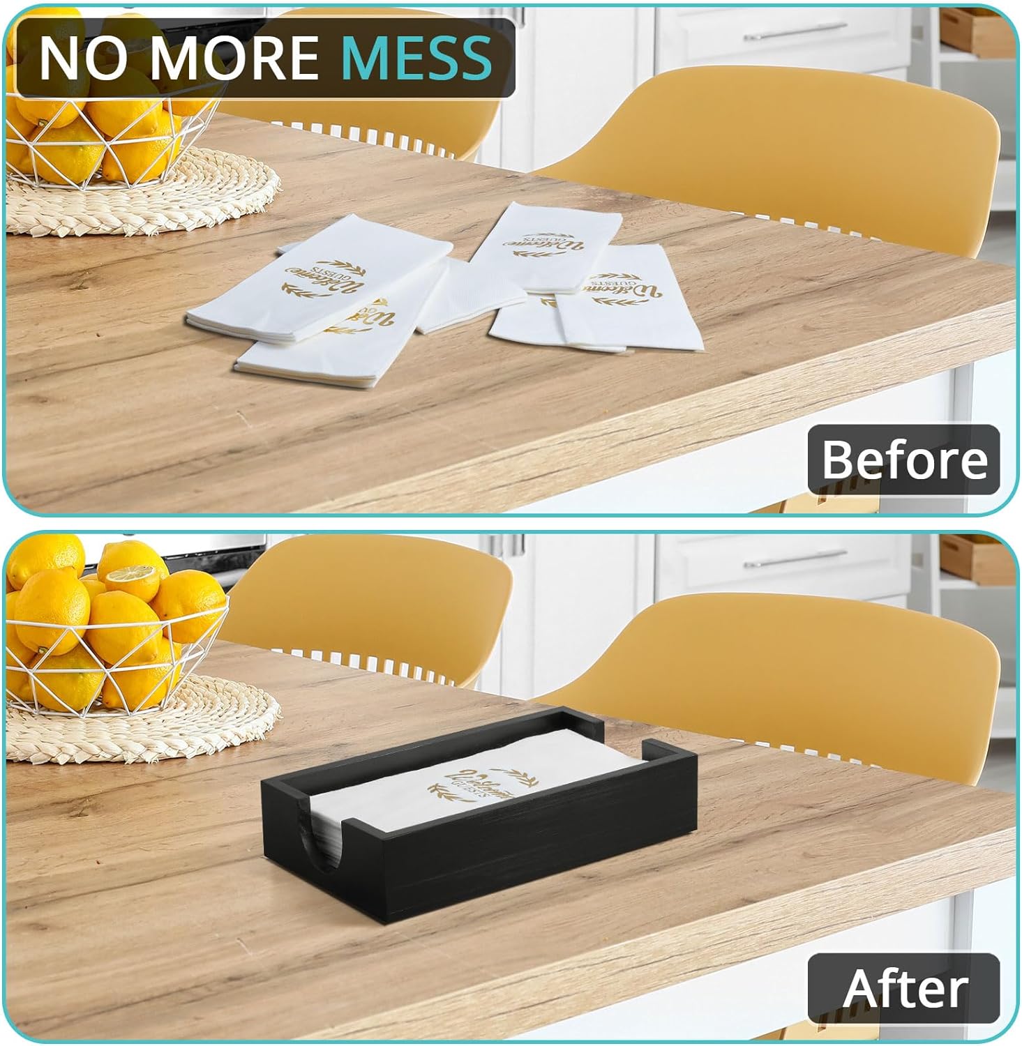 Napkin Holder for Bathroom, Wooden Guest Towel Holder Tray for Bathroom, Disposable Paper Hand Towel Holder for Bathroom Accessories, Dinner Napkin Holder for Kitchen Table Party, Black