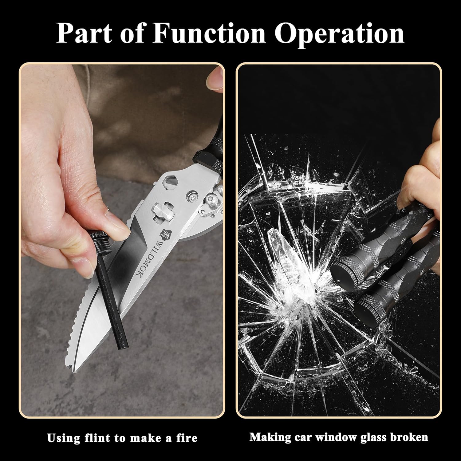 - 【Ergonomic bamboo shaped handle】The ergonomic handles of the kitchen shears makes it anti-slip and offer you a comfortable grip. the aluminum alloy material makes it very strong and durable, not easily deformed. The tail ends has built-in compass and flint, and a safety hammer blaster to increase the convenience of outdoor activities.