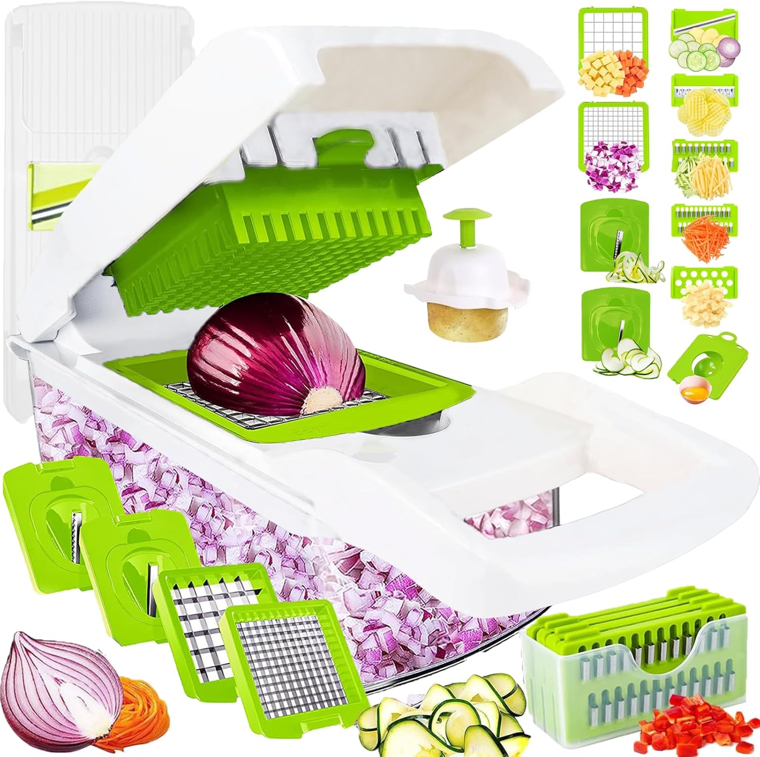 Pro-Series 20-in-1 Vegetable Chopper, Dewpeton Mandoline Slicer, Veggie Chopper, Food Chopper with Container, Vegetable Cutter Chopper & Spiralizer for Onion Salad (Home Essential Gadget & Kitchen)