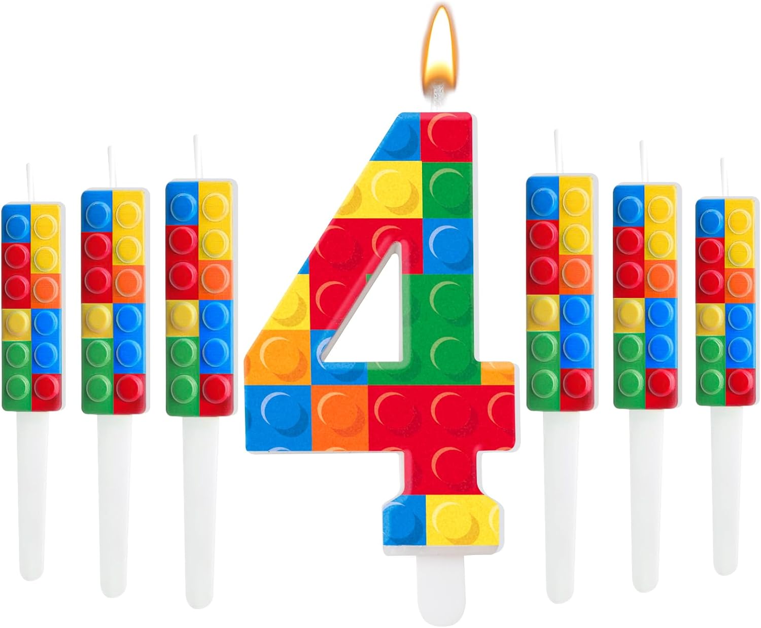 7 Pcs Building Block Themed Birthday Candles Set Building Blocks Number 4 Candle Cake Topper for Building Block Party Decoration Supplies (Number 4)