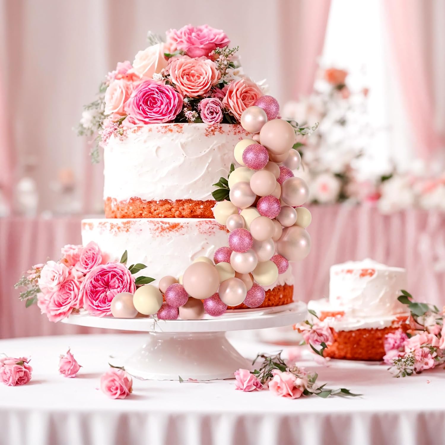 - Package Includes: You will get 48 pcs cake balls decorations in 4 colors and 10 butterflies cake decoration, including glitter pink, rose gold, light brown and apricot. 12 pieces of each color. The quantity of each sizes and colors included in each set are as shown in the picture