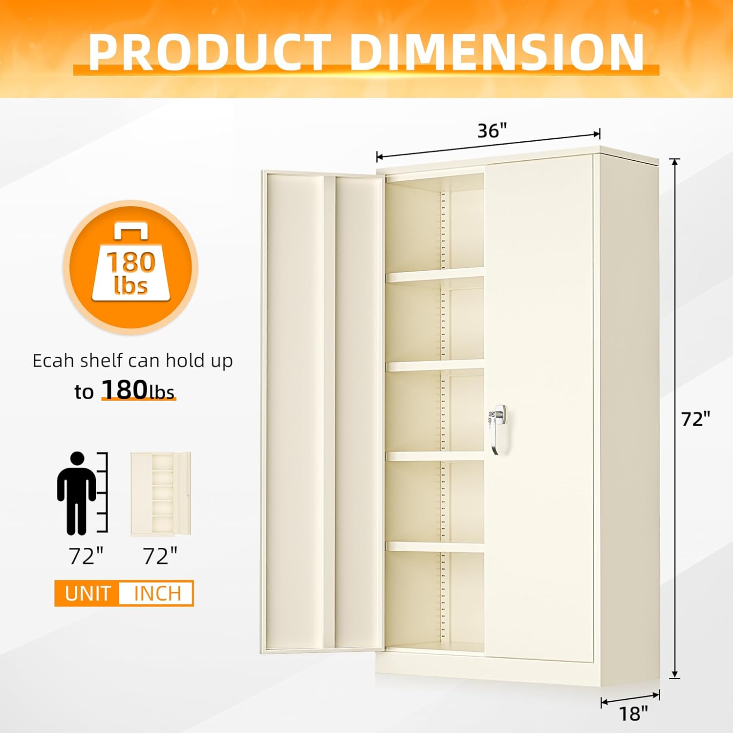- 【Large Storage Capacity】: The size of the metal storage cabinet is 72 H × 36" W × 18" D. With 4 adjustable shelves, the steel cabinet is divided into 5 layers, with larger storage space suitable for storing office papers, garage tools and household items.