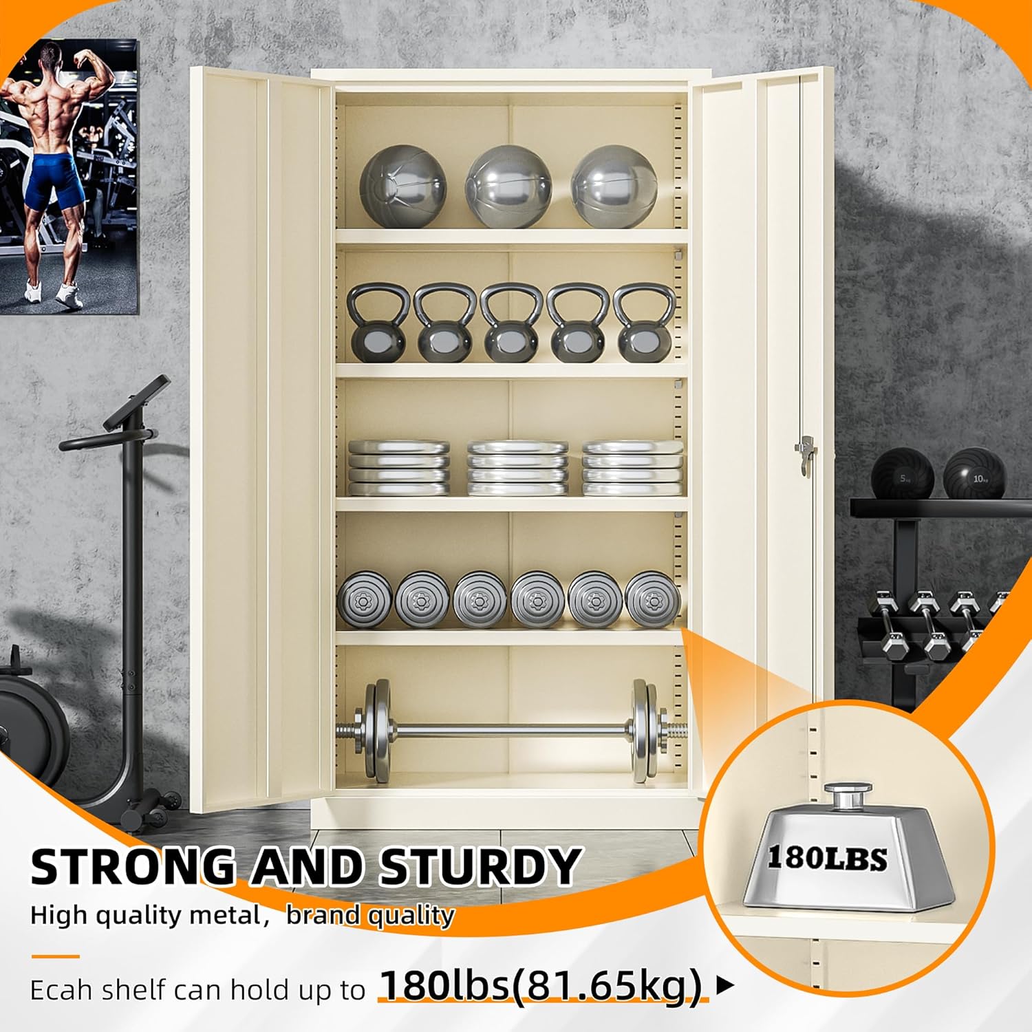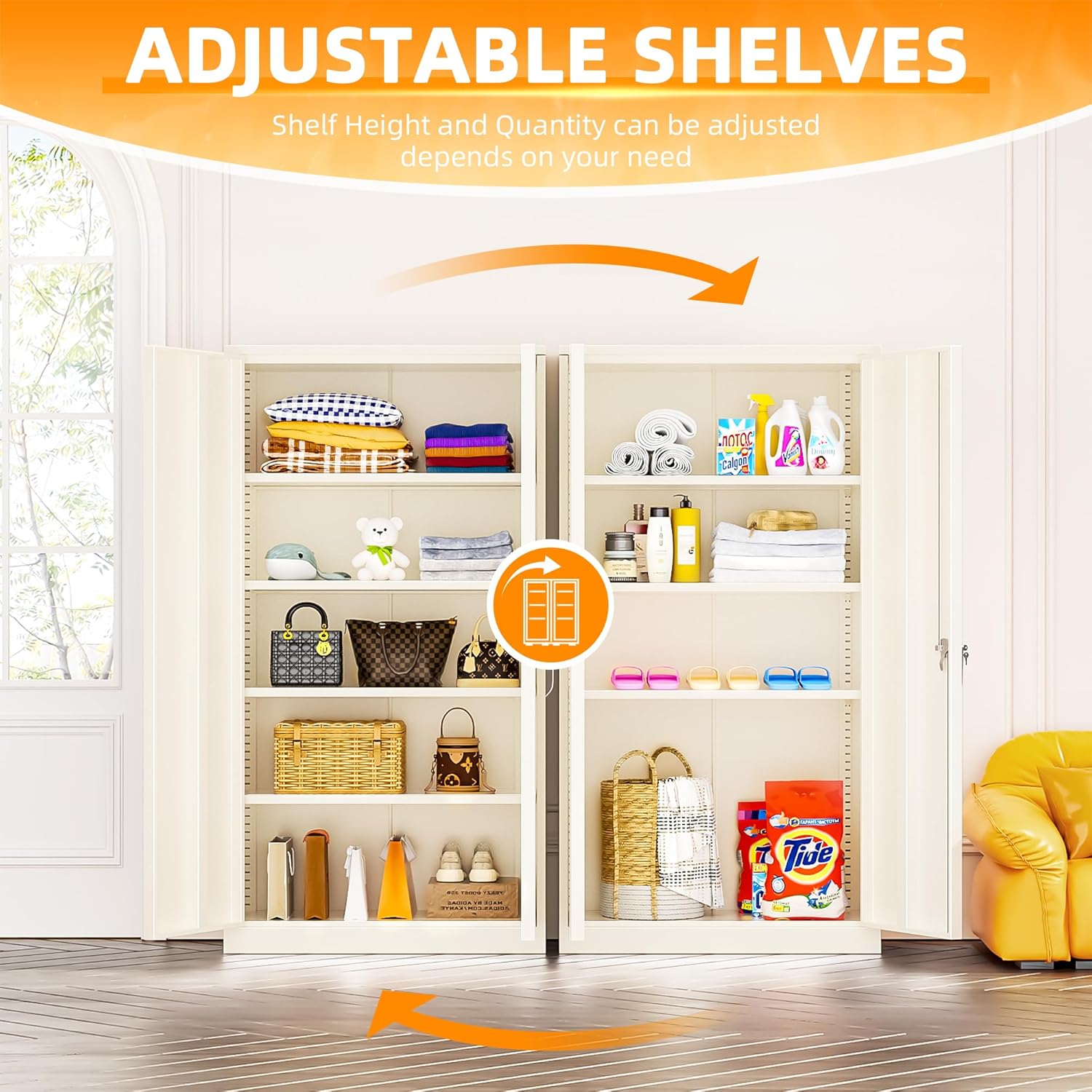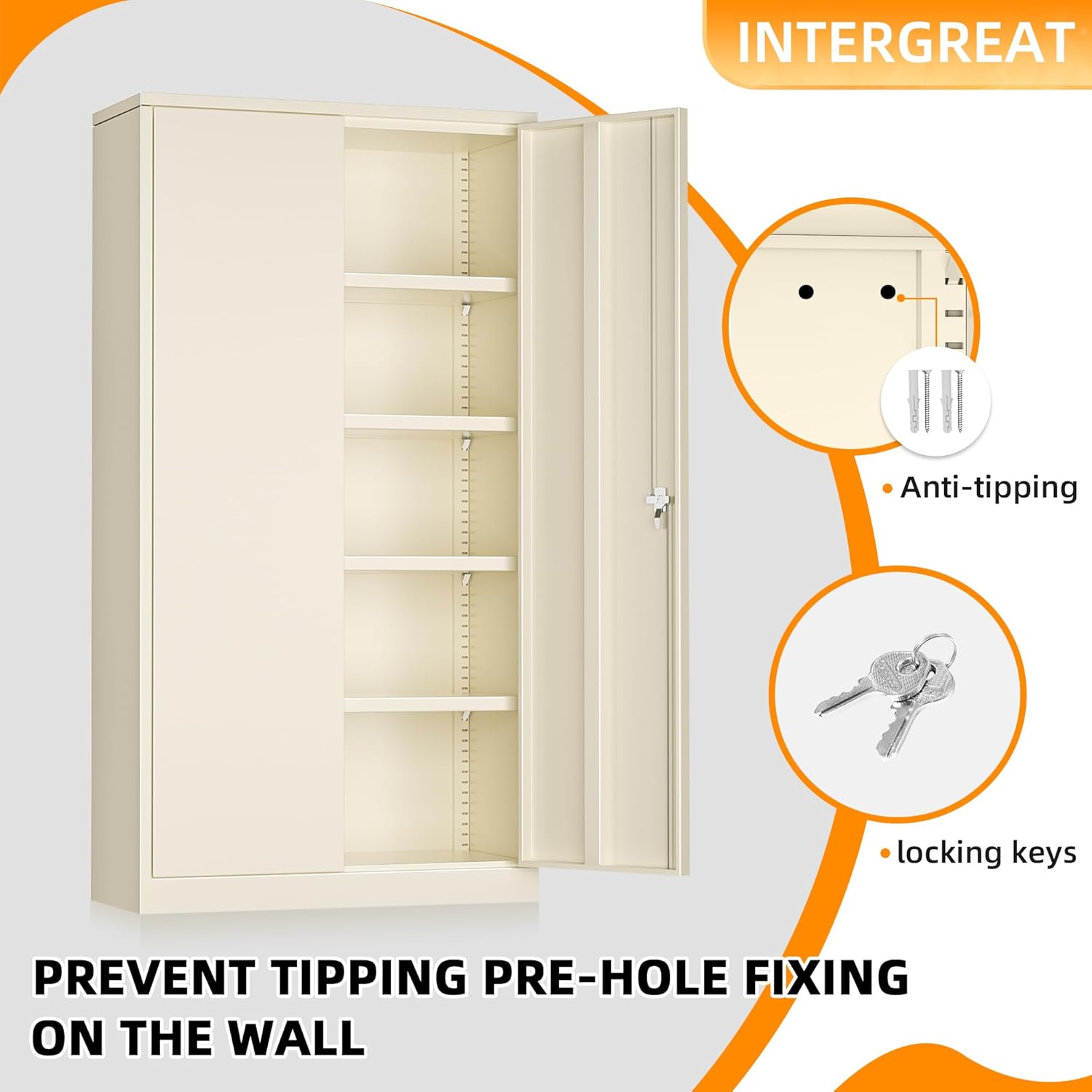 - 【High Security】: Tall steel storage cabinet with 2 door and 4 adjustable shelves to accommodate items of all sizes.The locking file cabinet with 2 Locking keys and 3-pointed locking system can highly secure your belongings.Whether you want to store office files, garage tools, or other large and heavy items, it's no problem.