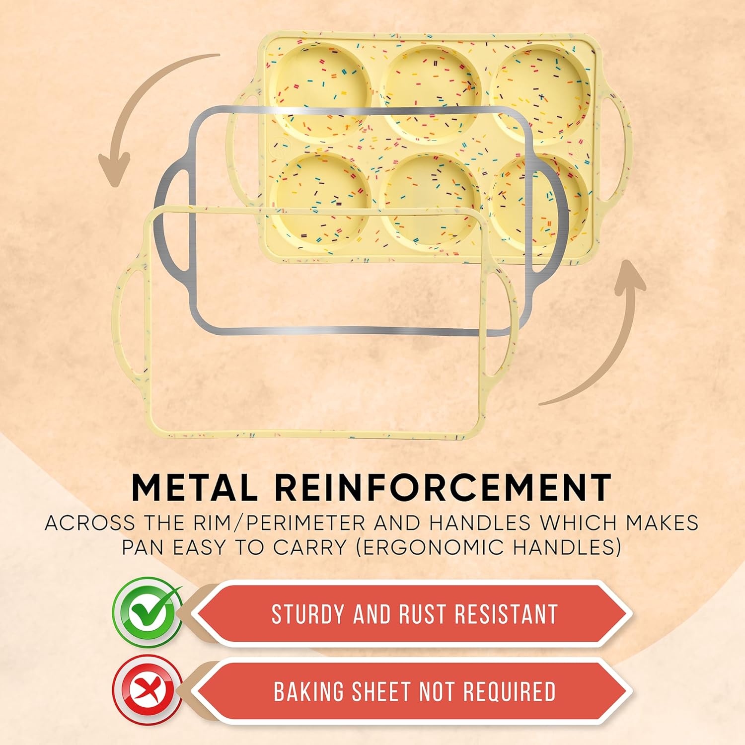 - EVEN BAKING WITHOUT THE MESS – Our muffin pan silicone design ensures even heat distribution for beautifully golden tops. Whether you prefer deep muffins or shallow whoopie pies, this large muffin pan jumbo delivers perfect results every time.