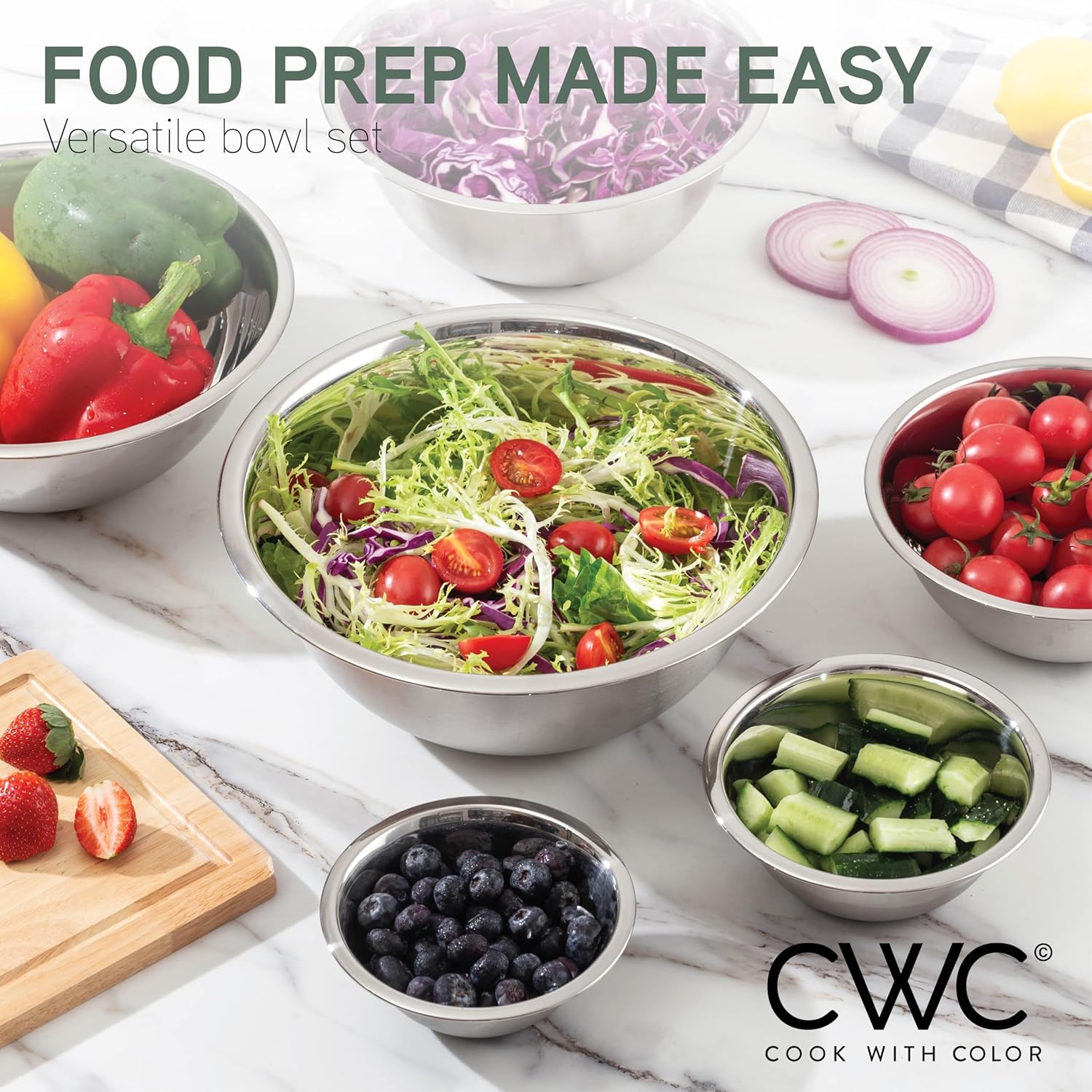 COOK WITH COLOR Stainless Steel Mixing Bowls Set - Nesting Bowls, 6 Pieces, Silver with Non Slip Bottom