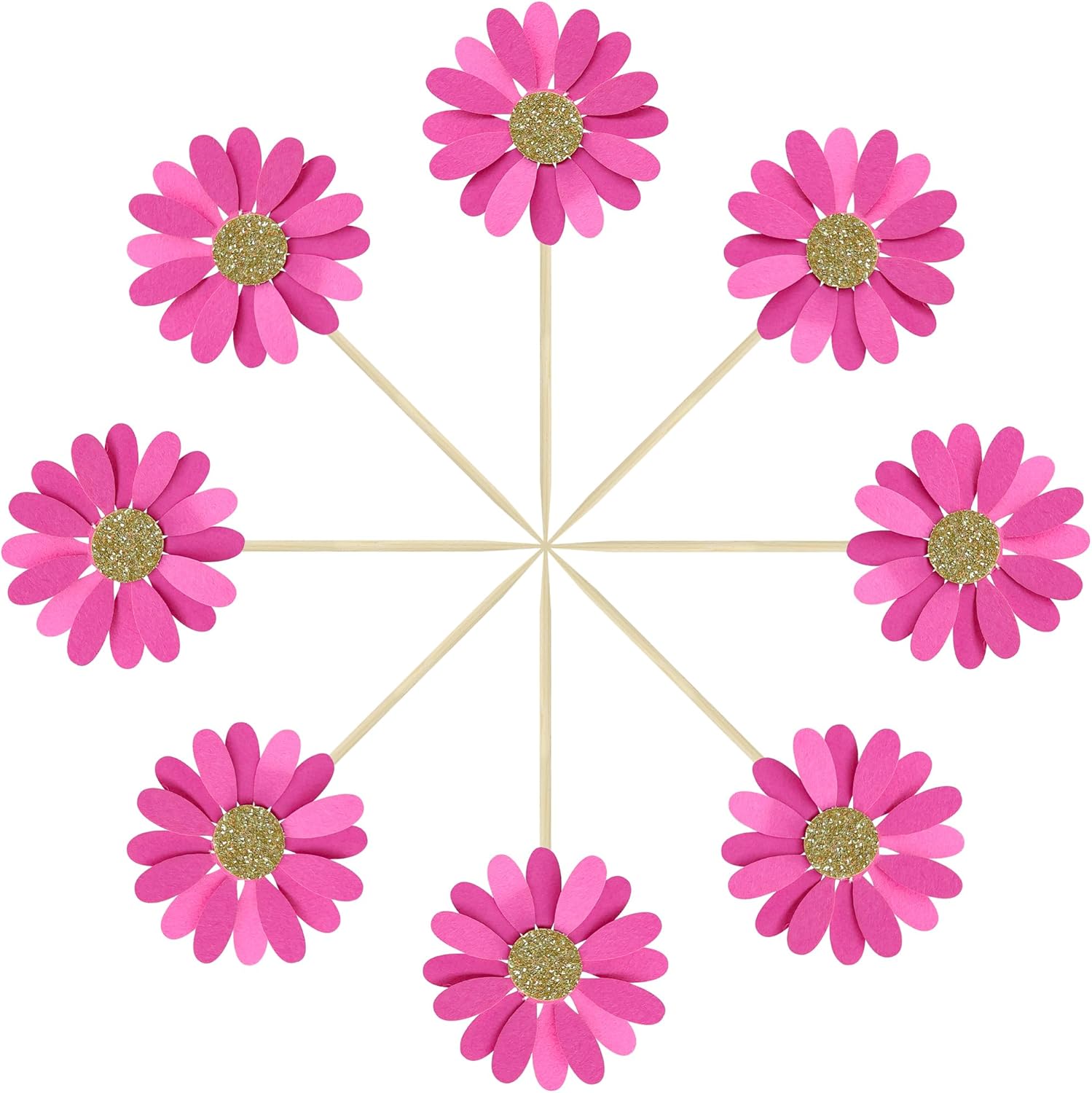 24Pcs Daisy Cupcake Toppers Flower Cake Topper Decorations Daisy Cake Decorations Chrysanthemum Cupcake Toppers Spring Daisy Flower Cake Picks for Birthday Wedding Supplies Rose Red