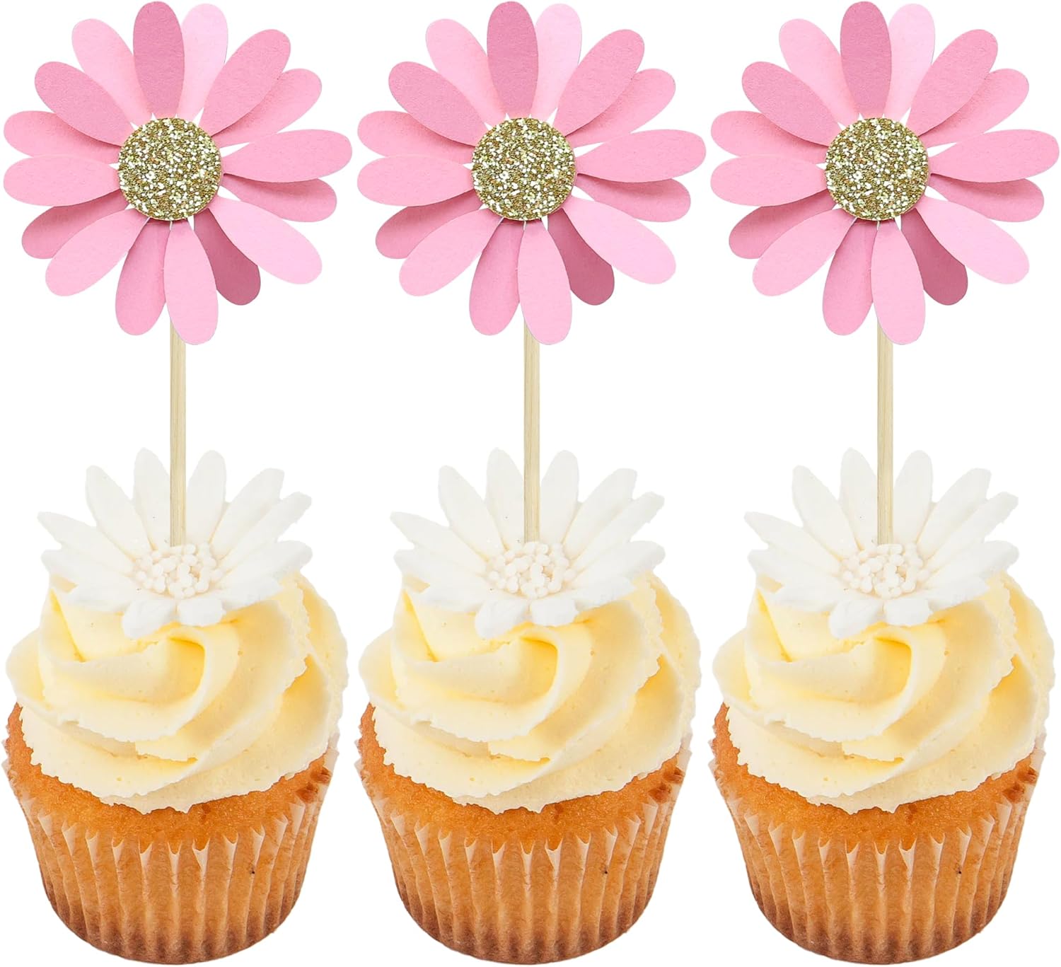 - 【NO Required】: 24Pcs Daisy Flower Cupcake Toppers can put in the cake directly! These Daisy Flower Cupcake Toppers saves your time and super easy to use. You can easily dress up your birthday theme cakes, yes! but don't stop there, put them into desserts, cookies, fruit pieces, appetizers, muffins and so much more!