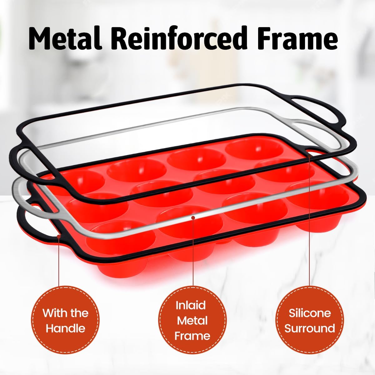 FUNBAKY Silicone Muffin Pan With Metal Frame, Muffin Tins Nonstick 12 Cups Regular Size Muffin Pan for Baking Muffin, Cupcake Food Grade