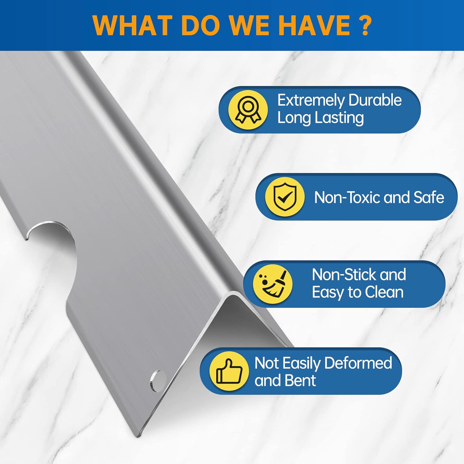 - 【Heat Evenly】Our expert grill parts replacement with heavy duty stainless steel to ensure long-lasting use, which can distribute heat evenly across entire surface. The stainless steel heat deflector not only heat evenly and retain heat superbly, but also deliver professional searing, able to produce prominent sear marks and make the food more flavorful.