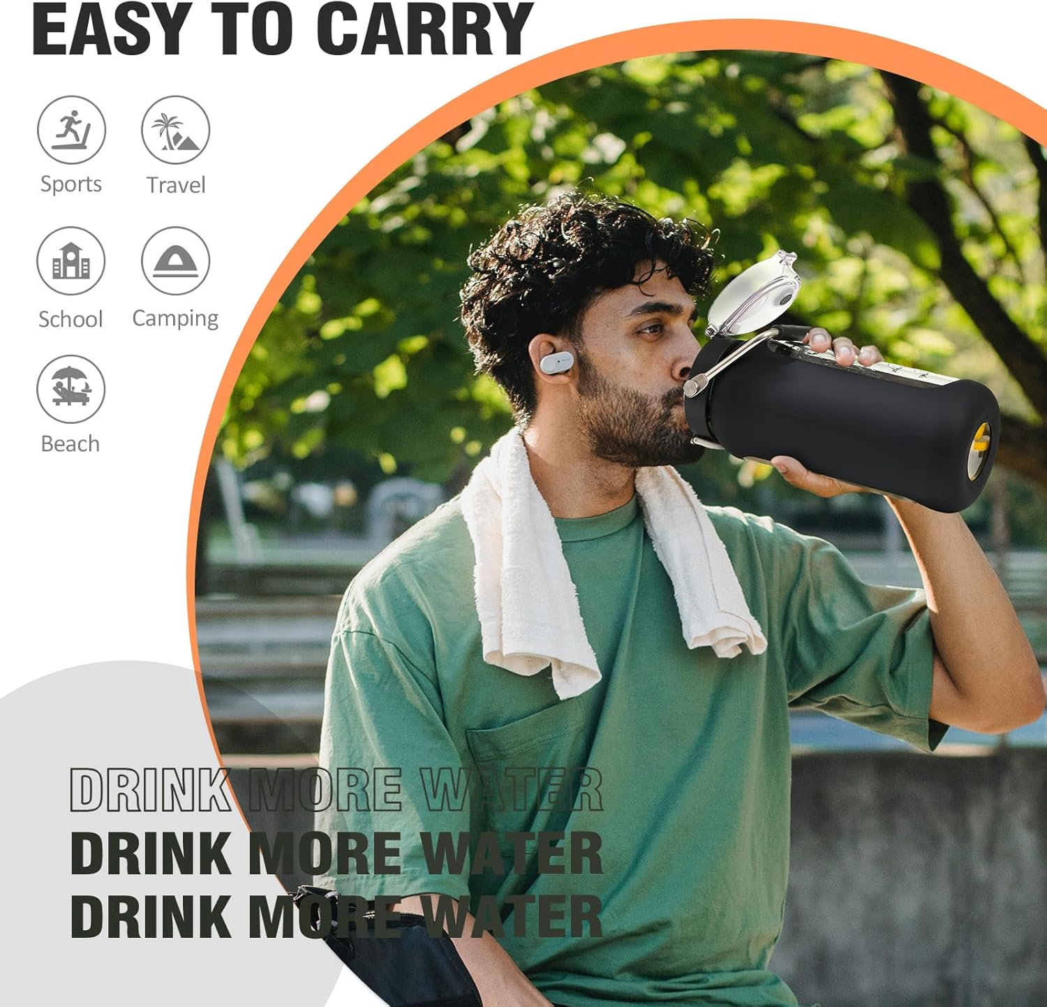 - Glass Bottle with Time Marker: Our half-gallon water bottle comes equipped with practical time and water capacity guides, making it effortless to track your daily hydration targets. With an ample 64 oz capacity, meeting the recommended daily intake of 8 cups, this motivating water vessel streamlines the inconvenience of frequent refills.