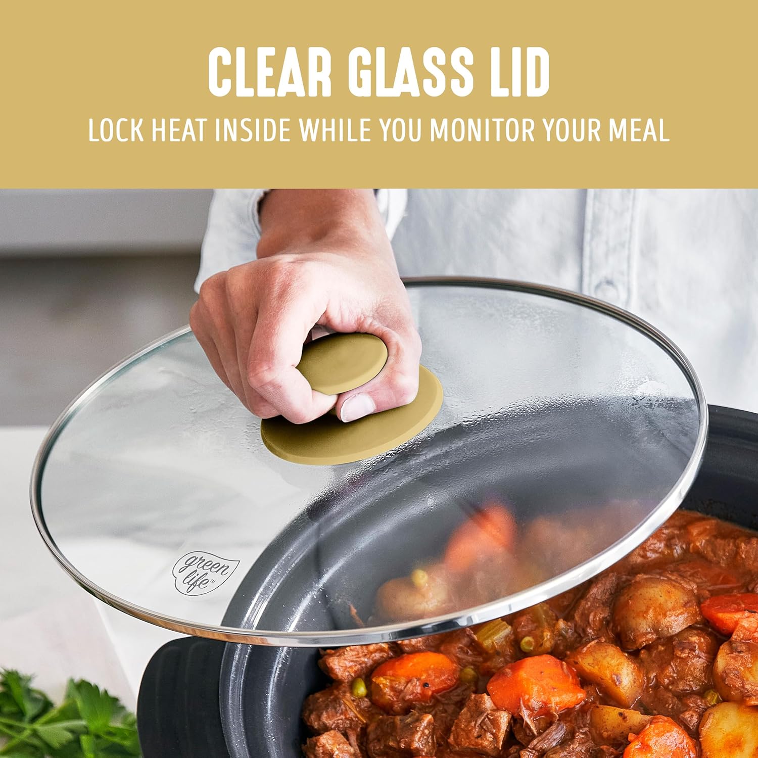 GreenLife 6QT Slow Cooker, Non-Toxic PFAS-Free Ceramic Nonstick Removable Interior Bowl, Programmable, Family Friendly, Keep Warm, Stovetop & Oven Safe, Dishwasher Safe Parts, Timer, Glass Lid, Yellow