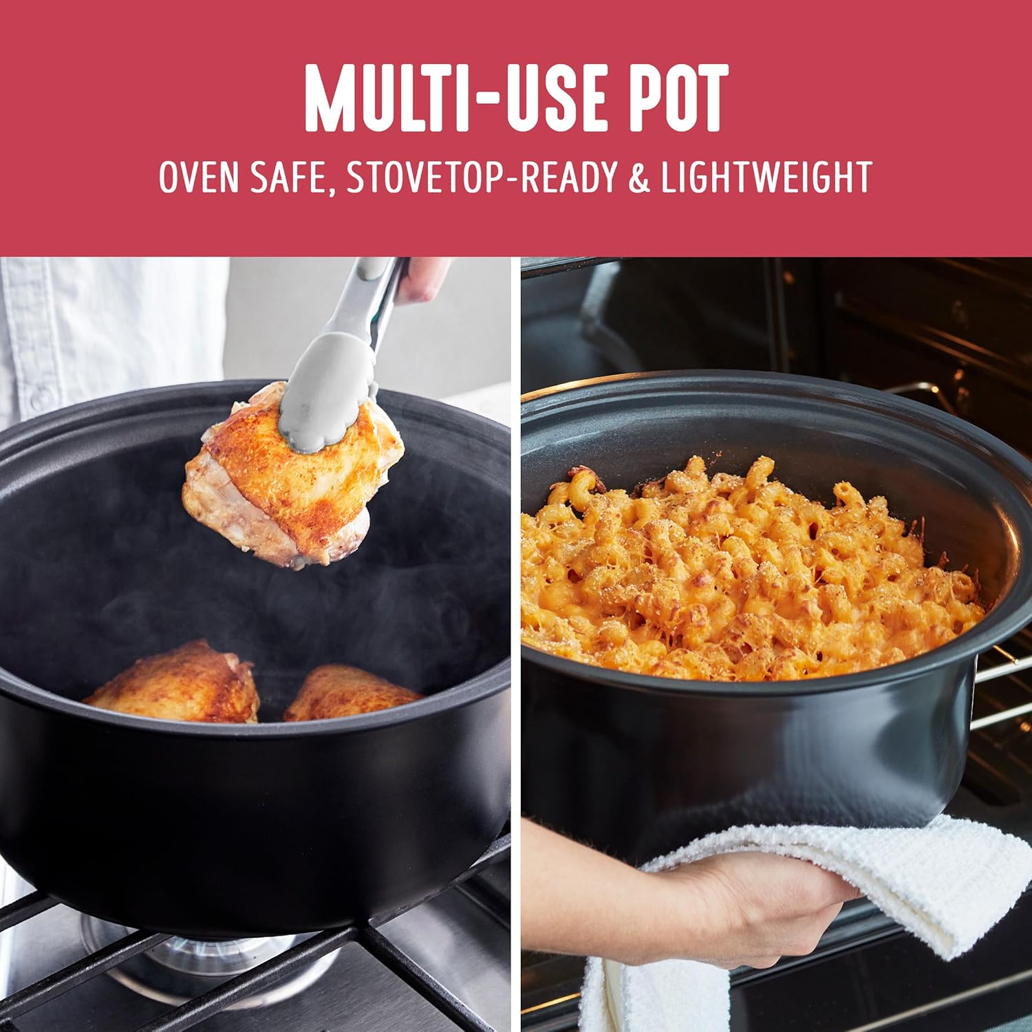 - STOVETOP READY POT: The pot is lightweight and removable for stovetop and oven use, so you can start with a sear, finish slow, and get more flavor.