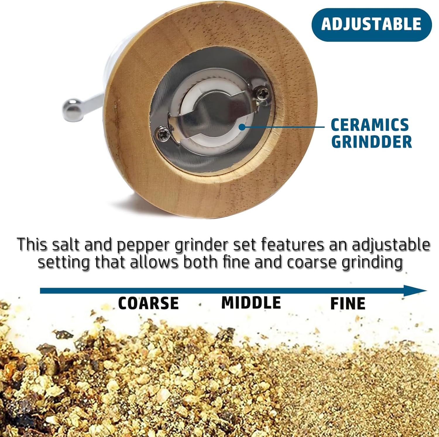 Pepper Mills Pepper Grinder Set, Classical Hand Shake Wooden Pepper Grinder Setrefillable Wood Acrylic grinder, Ceramic Blades & Metal Handle Tools (5in-2pcs-Mixed Color)