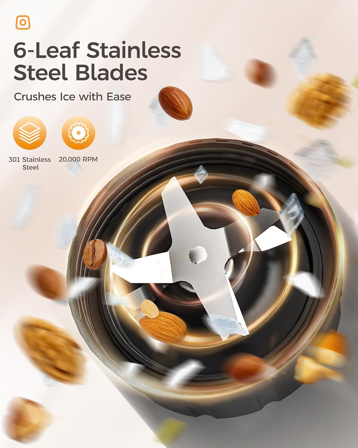 - Powerful Performance, Stronger Ice-Crush – Our smoothie blender is equipped with a 1000W powerful motor that spins at 20,000rpm for high-speed blending. It effortlessly crushes ice and blends frozen fruits to perfection. Whether you're making protein shakes, frozen cocktails, or your favorite smoothie recipes, this small blender for smoothies delivers refreshing, customized drinks to keep you cool all summer long!