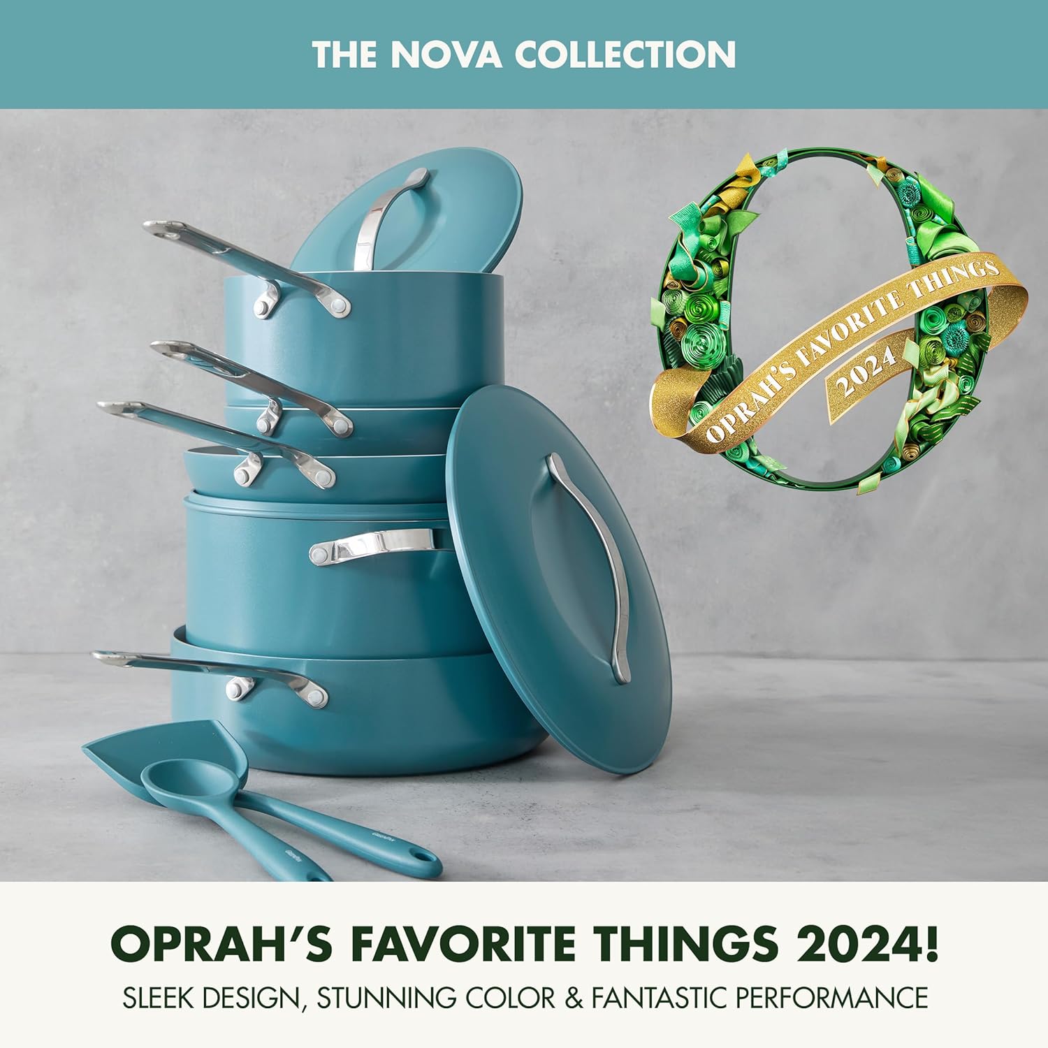 GreenPan Nova 10-Piece Cookware Pots & Pans Set, Oprah’s Favorite Things 2024, PFAS-Free Ceramic Nonstick, Fry, Sauté, Stockpot, Utensils, Lids, Induction Suitable, Dishwasher & Oven Safe, Deep Teal