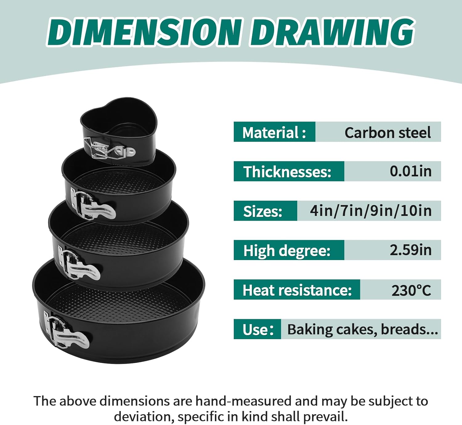 - 【Baker’s Friend 】: Set includes Heart(4 inch) Round(7,9,10 inch) springform pan,deep cake pan set lets you bake everything better for perfect results with cheesecake, brownie, deep dish pizza, lasagna, casserole, and quiche.