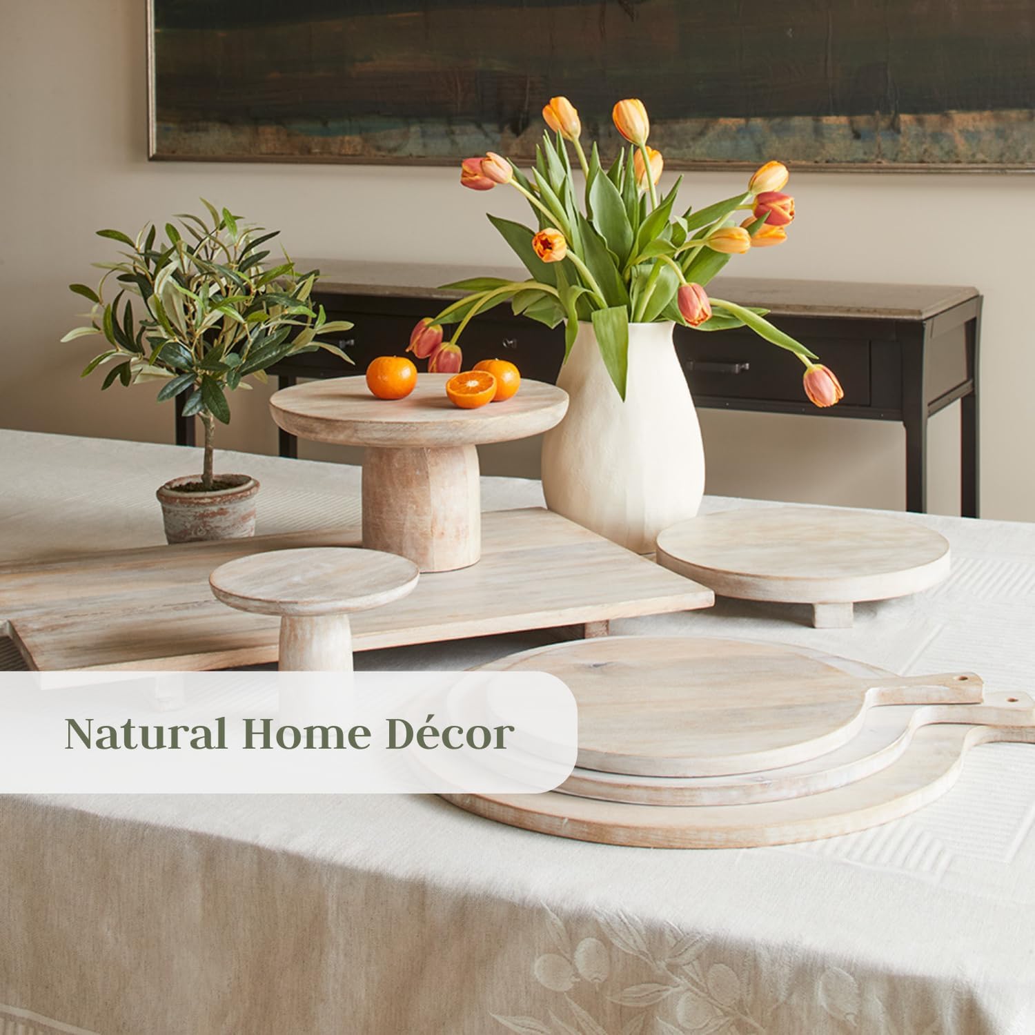 - HIGH QUALITY MATERIALS: Our round cutting boards measure 22" x 22" and are crafted from light mango wood, showcasing its natural grain and warm hues. Handmade by skilled artisans, the paddle design features a convenient handle for easy carrying and presentation.