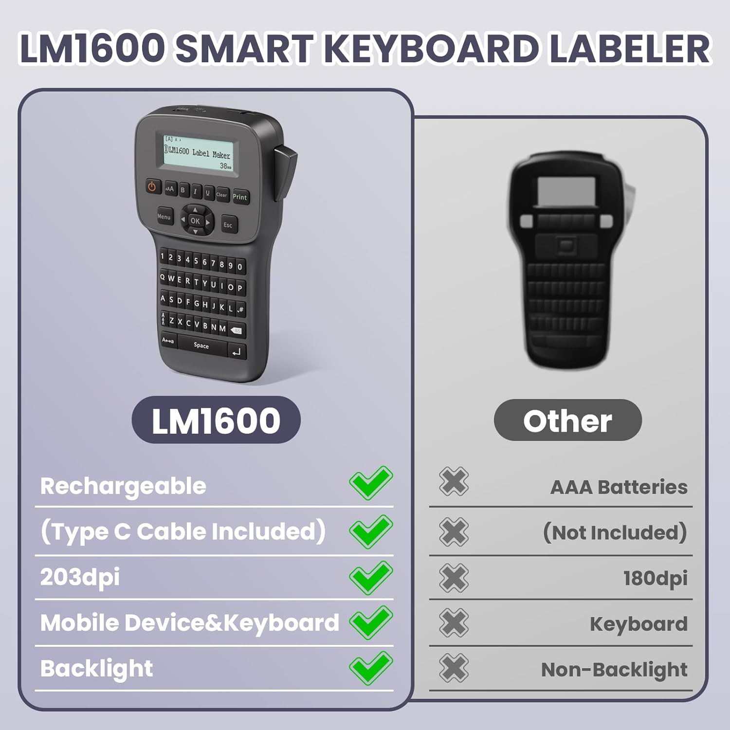Label Maker Machine with-Tape Waterproof, Rechargeable Label Maker Portable, Keyboard Label Makers with Backlit Screen, Bluetooth Labeler for School Office Industrial Use, LM1600 Black