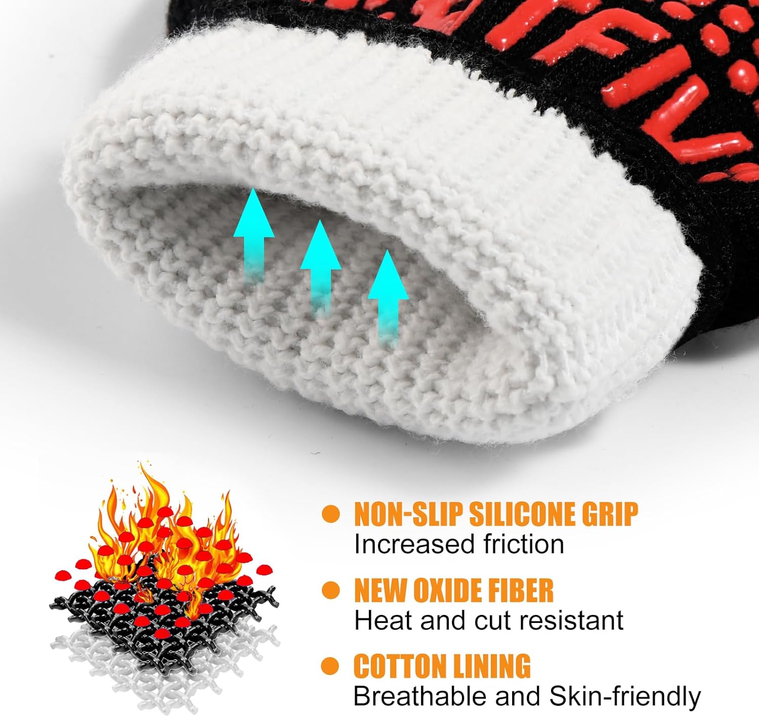 - Anti-Slip Design:To ensure safety and convenience during use, our grilling gloves are covered with a layer of specially designed anti-slip silicone patterns. Not only do these patterns enhance the aesthetic of the gloves, but they also provide exceptional grip strength.