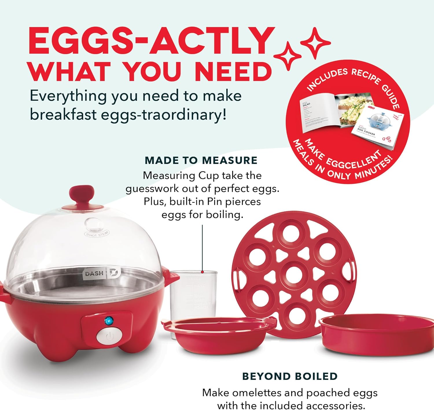 DASH Rapid Egg Cooker: 7 Egg Capacity Electric Egg Cooker for Hard Boiled Eggs, Poached Eggs, Scrambled Eggs, or Omelets with Auto Shut Off Feature - Red