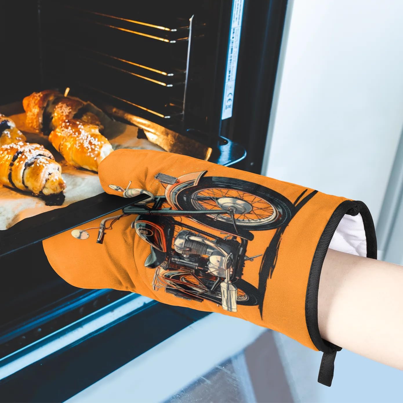 Motorcycle Theme Oven Mitts and Pot Holders Sets, 2 Pcs Decorative Kitchen Oven Glove for Cooking