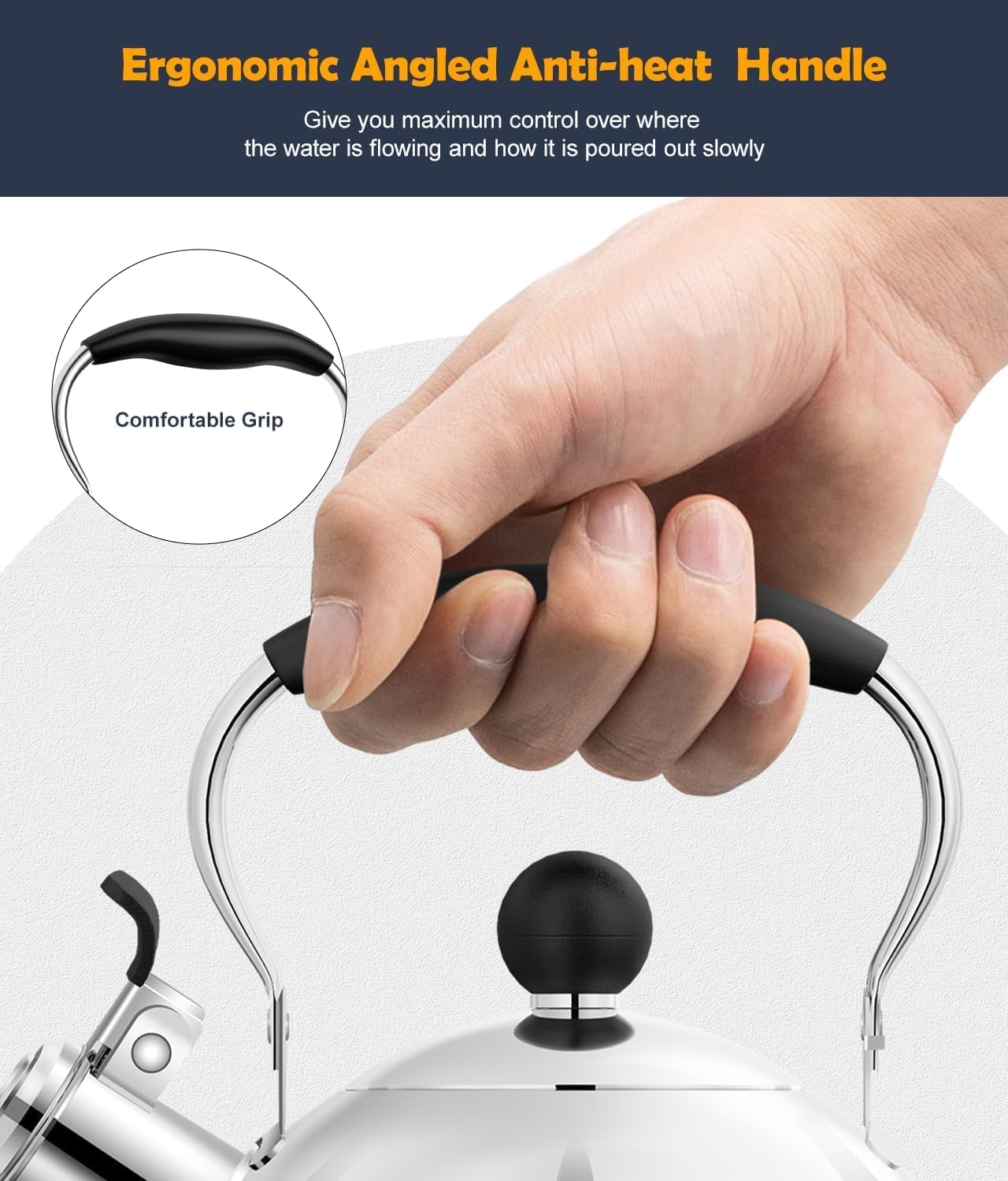 - ✔Ergonomic Designed Handle: Whistling teapot with an ergonomically handle, non-slip design makes pouring and filling easier, also comfortable to hold.(Note: please use a protect-holder in your hand to touch the handle if the water has just reached boil) Also it is foldable, save space for storage.
