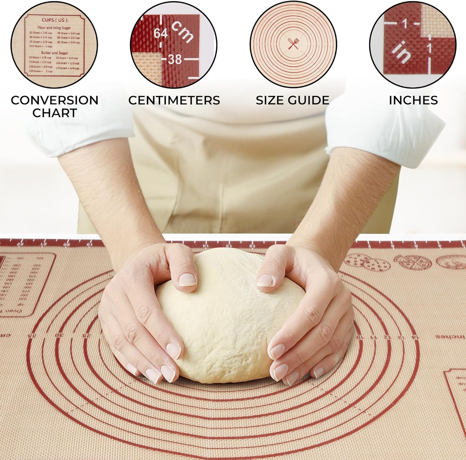 - NON-STICK & EVEN HEAT DISTRIBUTION: Perfect for both dry and sticky ingredients, say goodbye to using cooking sprays, foil, or parchment paper, our reusable silicone baking mats provide a non-stick surface, making them perfect for rolling or prepping sticky ingredients. Achieve even heat distribution for perfectly baked results every time, and protect your pans from any mess with our silicone baking set.