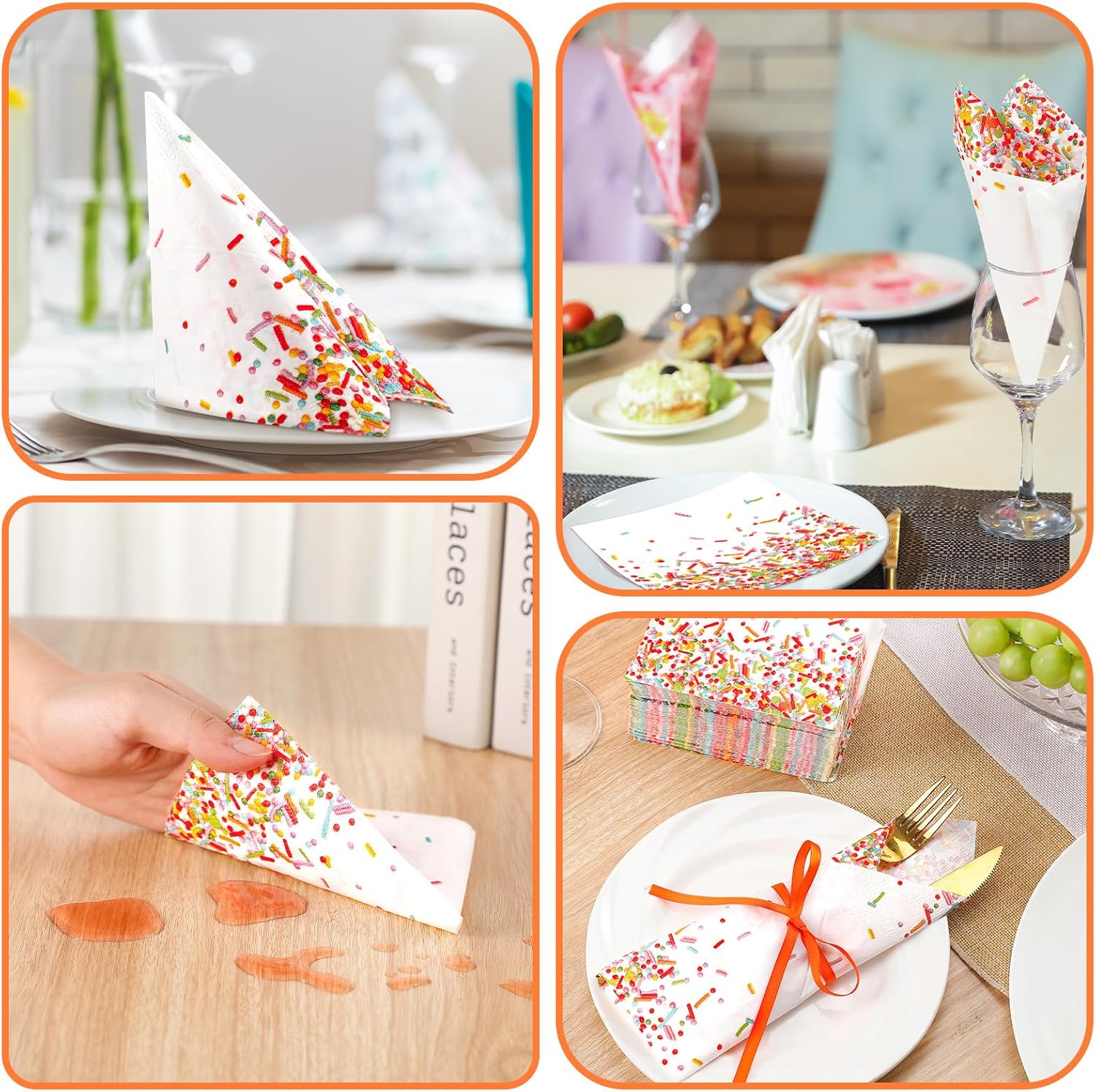 - Material: these sprinkle napkins disposable and suitable for cleaning up small messes or serving meals; They are not easy to tear, ensuring they can meet many of your needs, and you do not have to clean them