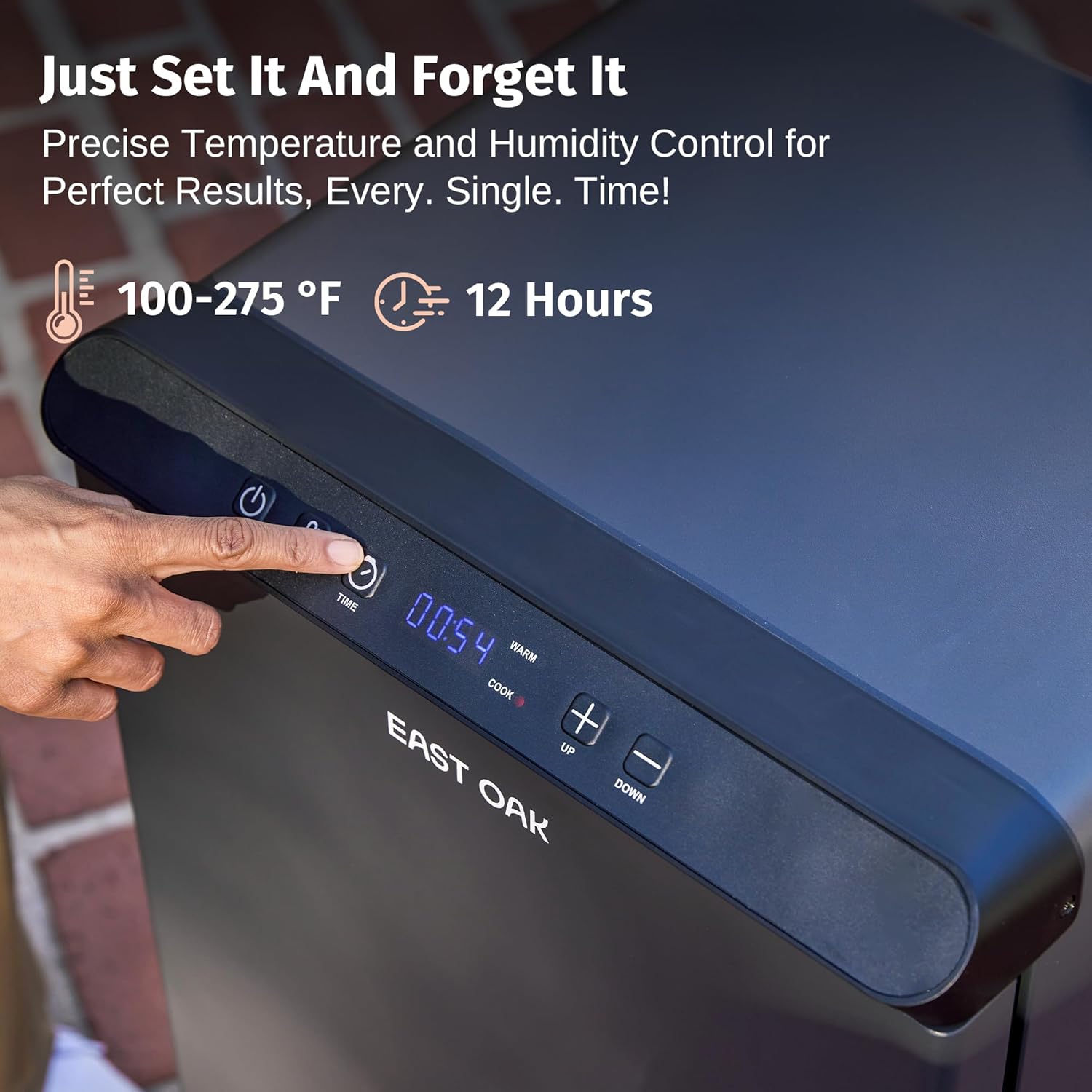 - ๐ง๐ฒ๐ป๐ฑ๐ฒ๐ฟ ๐ฎ๐ป๐ฑ ๐๐๐ถ๐ฐ๐ ๐ง๐ฎ๐๐๐ฒ: The 800W power heating tube in the electric smoker creates consistent smoke from wood chips, guaranteeing tender, juicy meats through low and slow cooking. Follow EAST OAK's website for more delectable recipes
