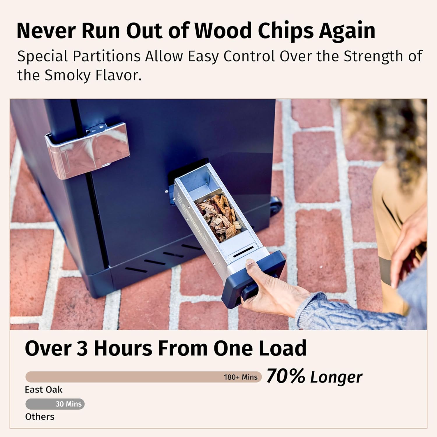 - ๐ข๐ป๐ฒ ๐๐ถ๐น๐น, ๐๐ฒ๐๐๐ฒ๐ฟ ๐ฆ๐บ๐ผ๐ธ๐ฒ๐ฟ ๐๐น๐ฎ๐๐ผ๐ฟ: The smoker features a side wood chip loader for continuous smoking for 2-3 hours without opening the door and adding chips, preserving the internal heat, and locking in the smoked flavors