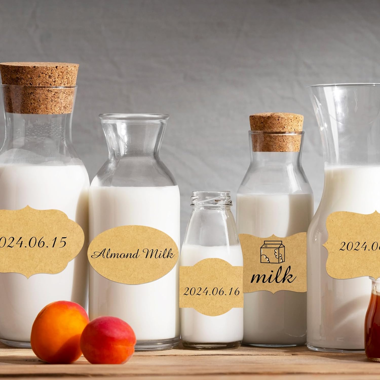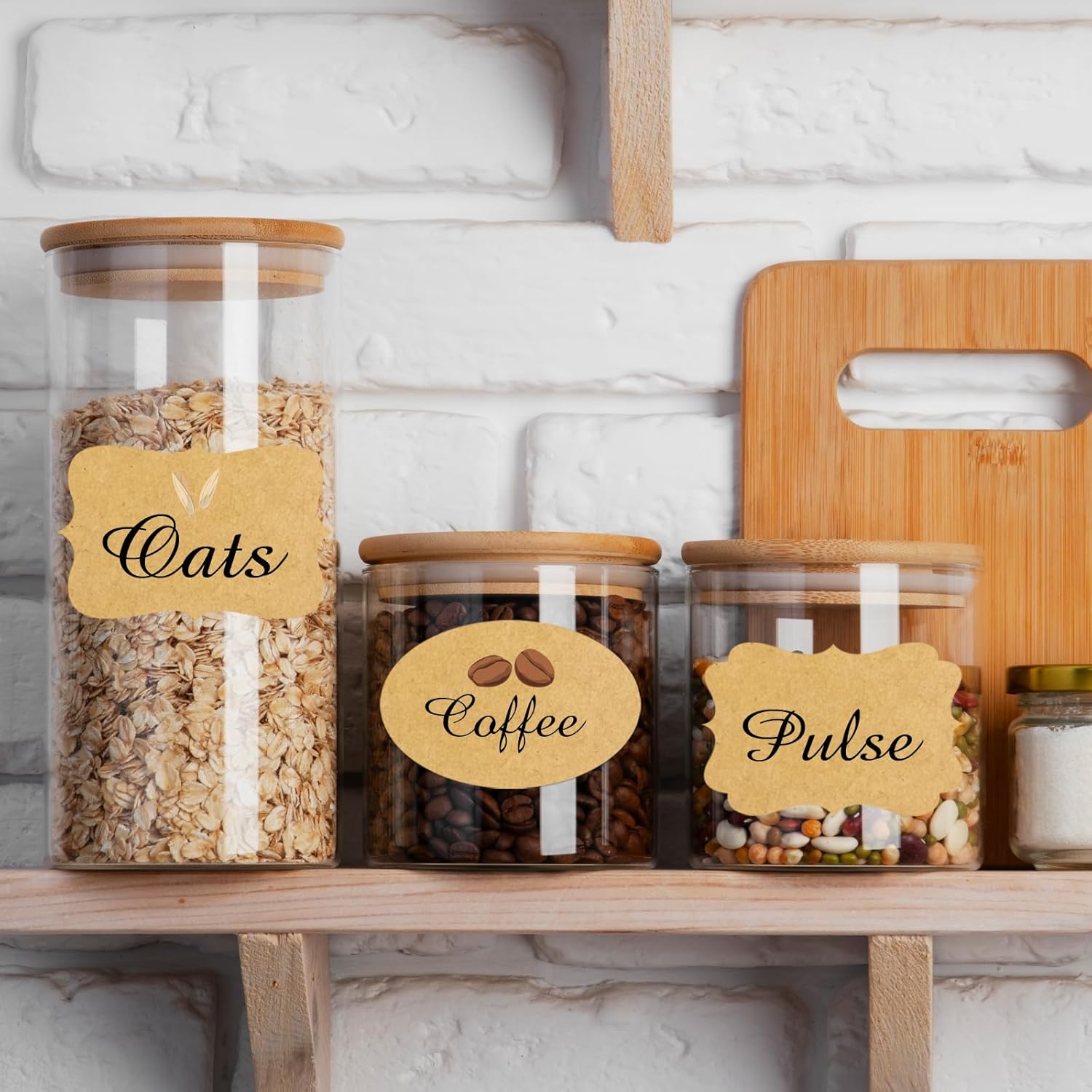 Kraft Labels Stickers, 250 PCS 3" x 2" Fancy Shape Stickers Labels for Storage Box or Food Jars Holiday Present Stickers Christmas Gift Tags Stickers
