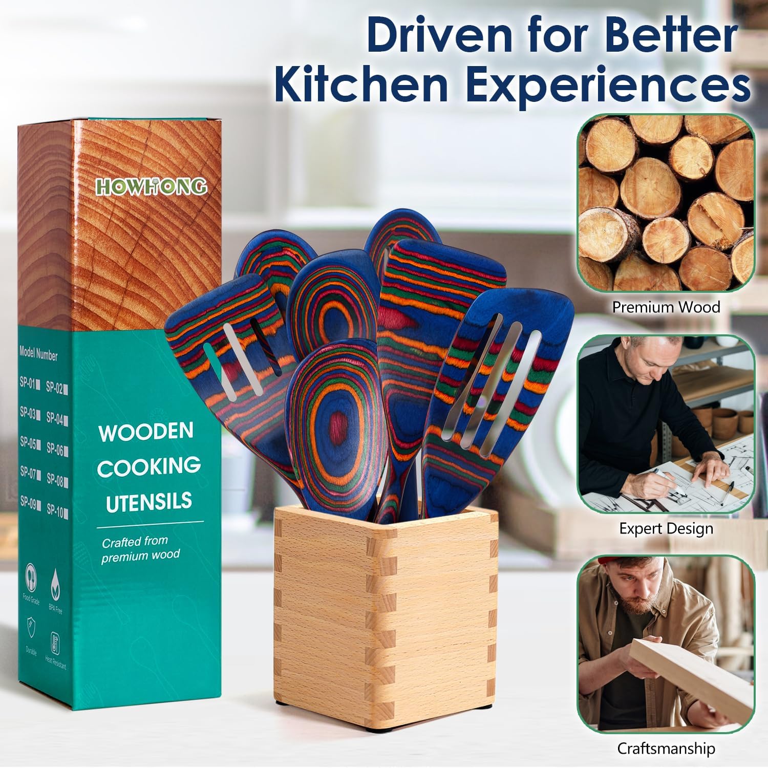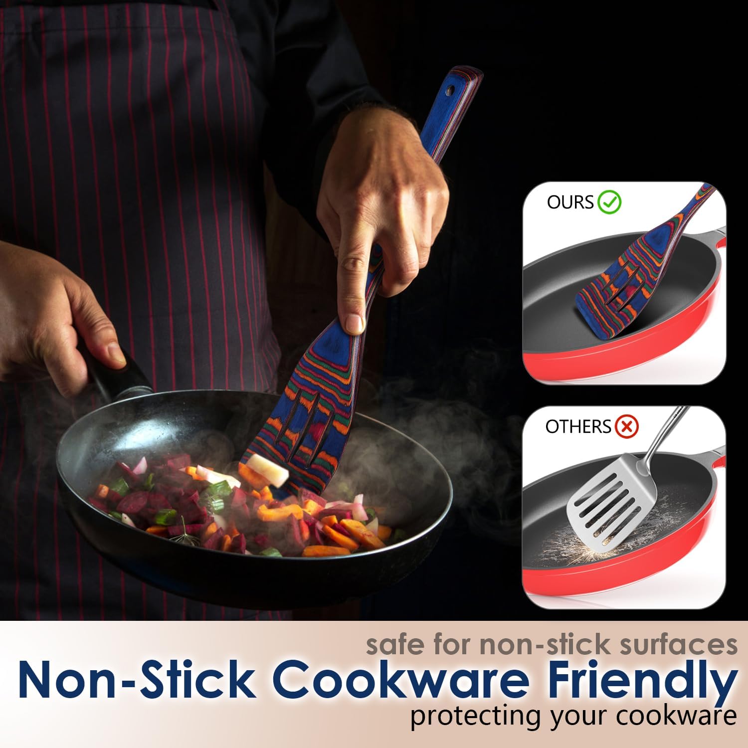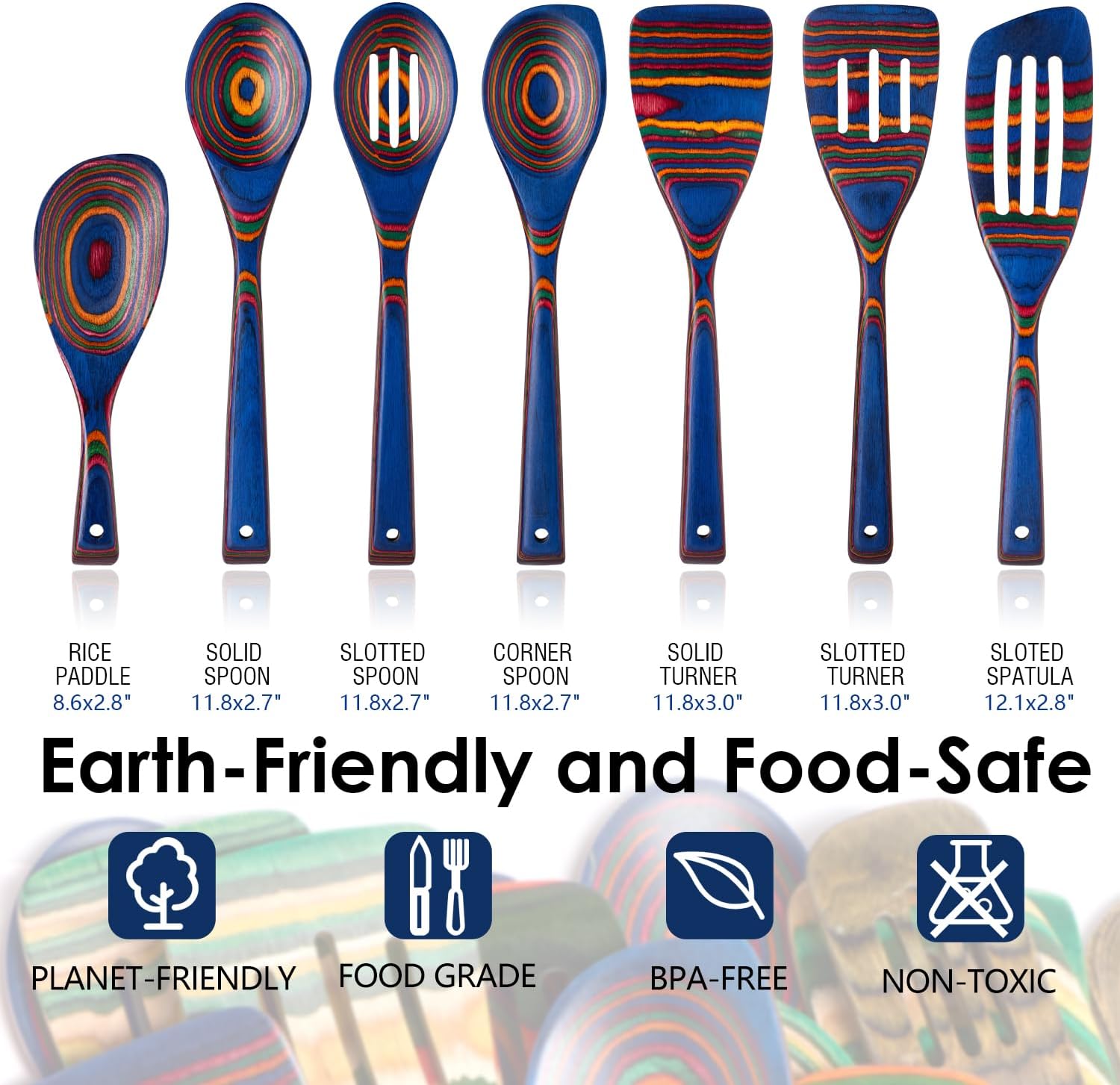 - COLORFUL SPECTRUM DESIGN: Multicolor pakkawood utensils with vibrant pattern bring personality and elegance, adding a bold accent to your kitchen décor.